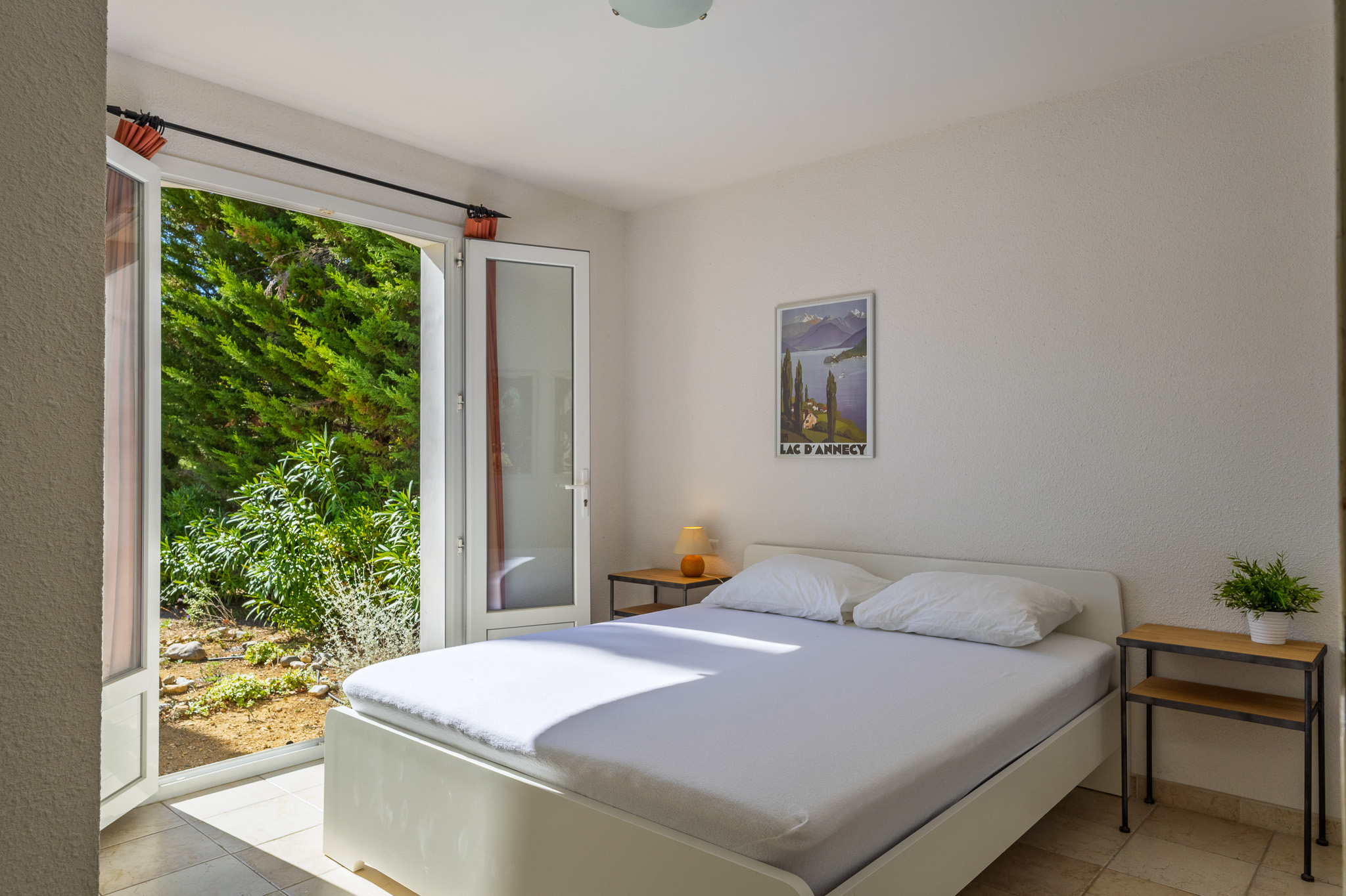 La villa a été conçue pour s'intégrer parfaitement à son environnement. Devant la propriété s'étend un agréable espace boisé, idéal pour un pique-nique tout en profitant de la vue, du parfum du romarin et du chant des cigales.
