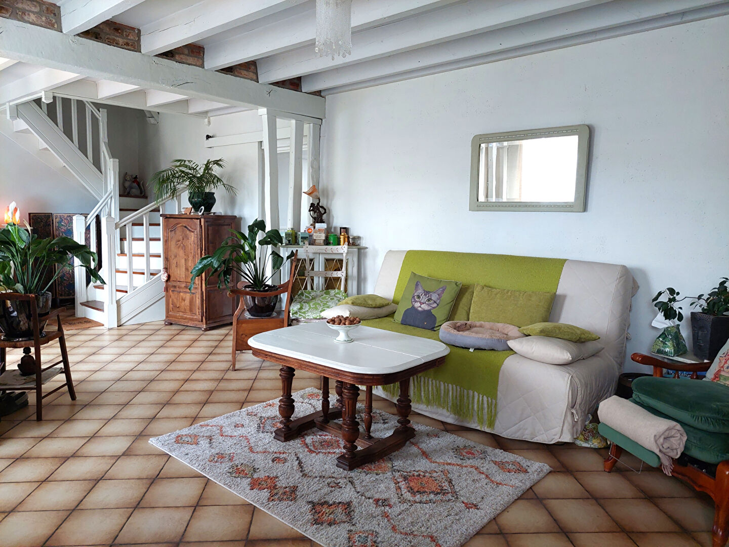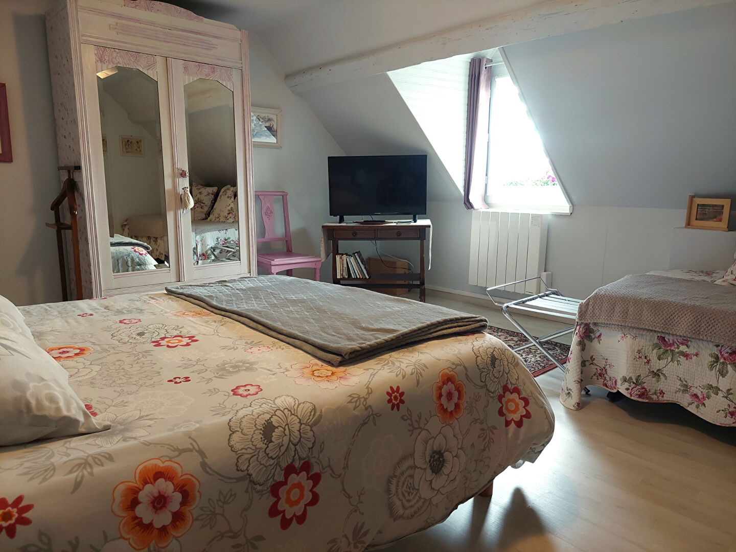 -A l'étage (aujourd'hui utilisé en chambre d'hôtes) un palier avec placard, une chambre, une salle d'eau avec douche et WC