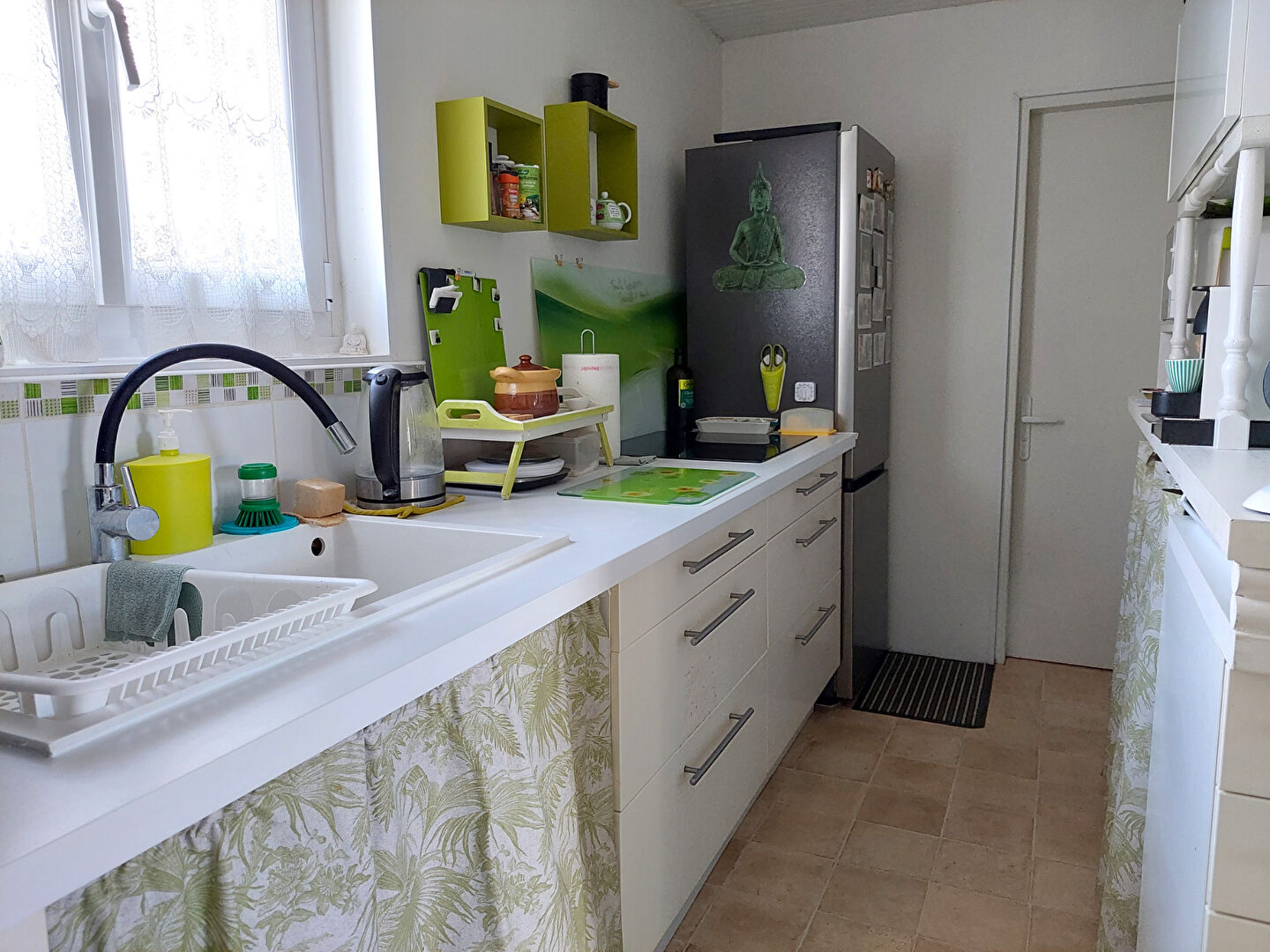 -Au rez de chaussée d'une salle, salon, cuisine aménagée, WC indépendant, chambre avec placard, une salle de douche,