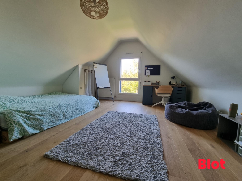 A vendre en exclusivité, sur Pacé : belle maison contemporaine de 7 pièces à proximité du bourg, non loin des collèges, du bus menant sur Rennes, idéale pour une famille grâce à ses 5 chambres. Nombreux rangements, grenier aménageable. Garage attenant. Jardin clos, sans vis à vis et exposé sud-ouest, à proximité d'un parc, environnement calme.
