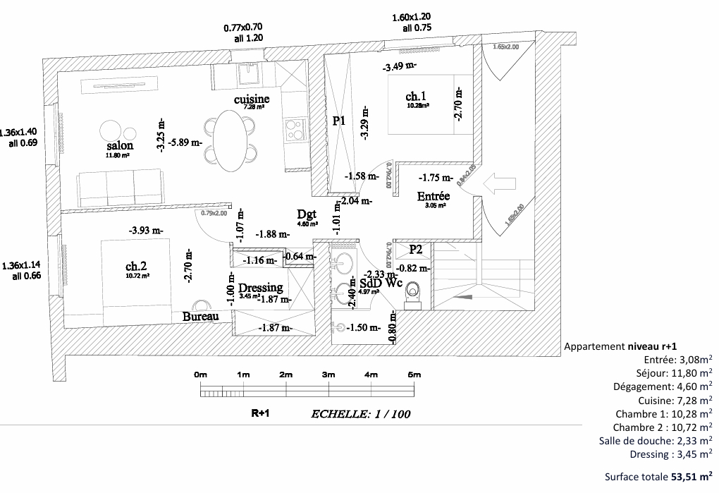 Lot 2 (1er étage 53 m²) : avec accès local commun et parking privé