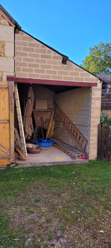 A l'extérieur : une grange avec un grenier, un garage, un cellier, deux anciennes soues à cochons et un puits, le tout sur une surface cadastrale de 748 m²