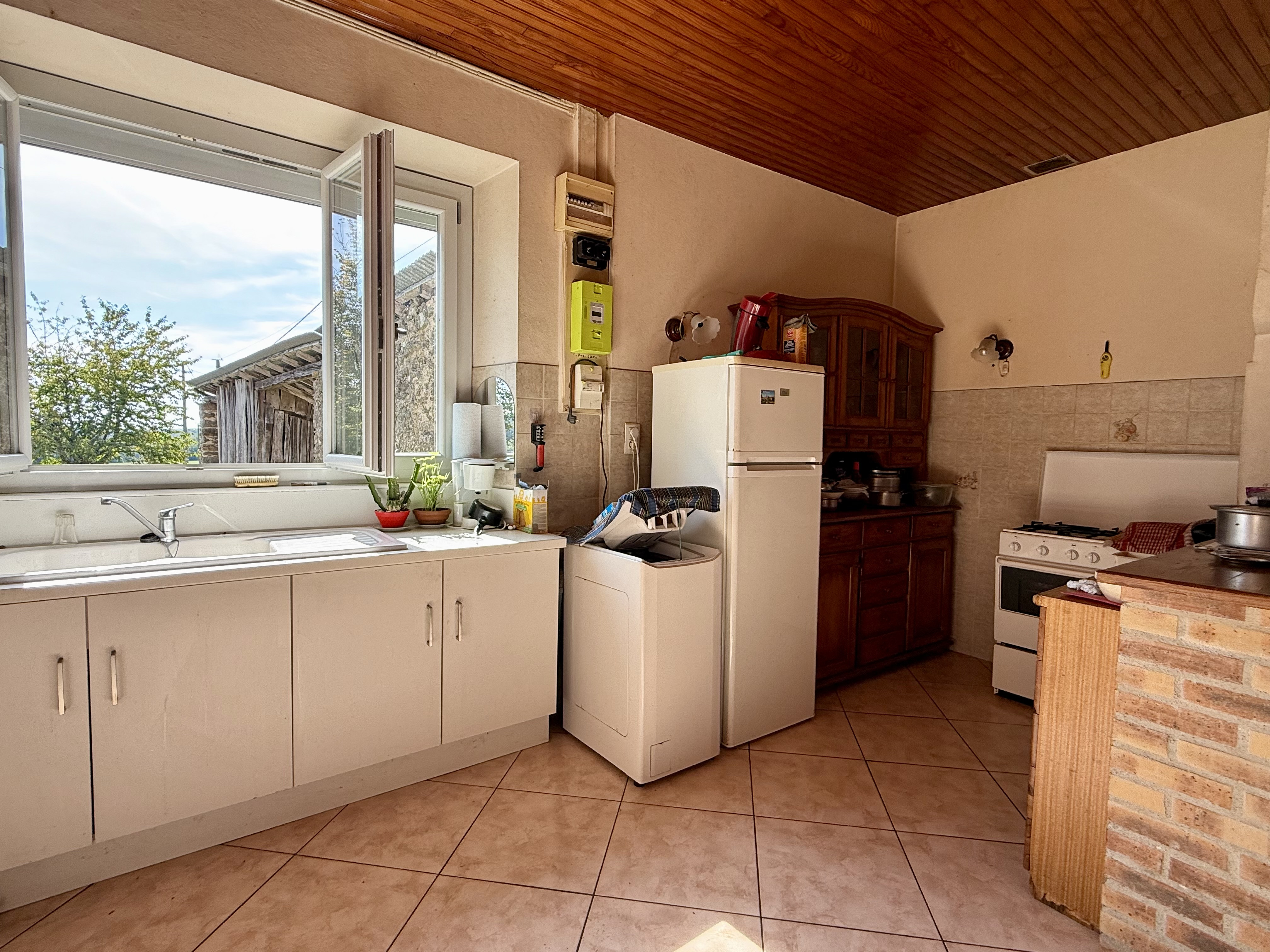 EXCLUSIVITE DORDOGNE - PERIGORD VERT, ensemble immobilier composé d'une maison d'habitation (actuellement louée) comprenant : entrée, cuisine/salle à manger, deux chambres, salle d'eau, WC. Grenier (possibilité de faire des pièces), cave,. Fenêtres double vitrage. Volets solaires. Chauffage électrique (possibilité cheminée). Assainissement refait à neuf en 2024 (facture). Dépendance attenante à la maison. Belle grange + hangar attenant. Jardin arboré. Terrain attenant et à proximité immédiate principalement en nature de pré (très majoritairement) et bois. Les informations sur les risques auxquels ce bien est exposé sont disponibles sur le site Géorisques : www.georisques.gouv.fr Plus de renseignements sur demande. - FN_1760934043