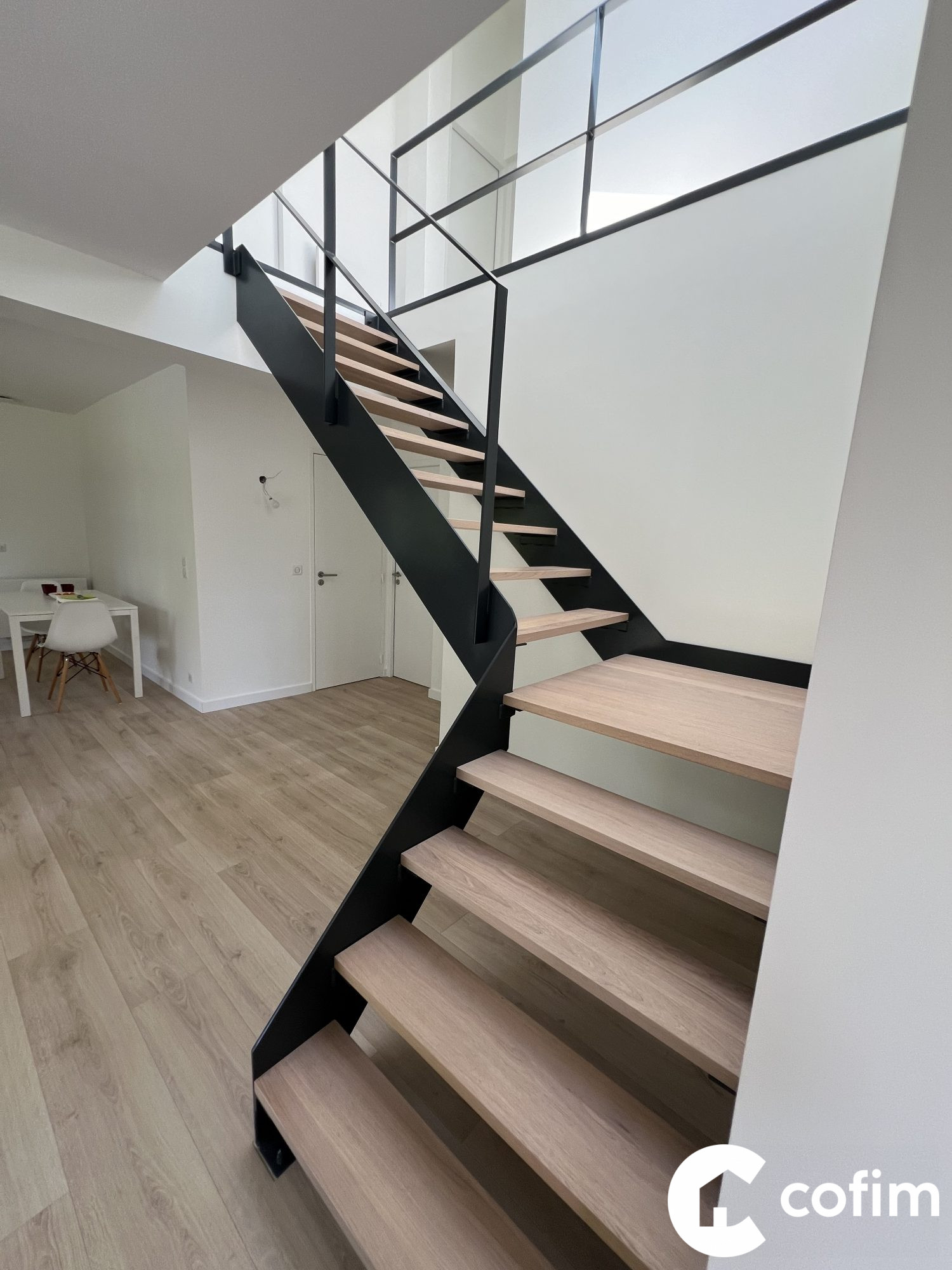 Elle offre un vaste espace de vie lumineux, ouvert sur une cuisine moderne, équipée et aménagée.