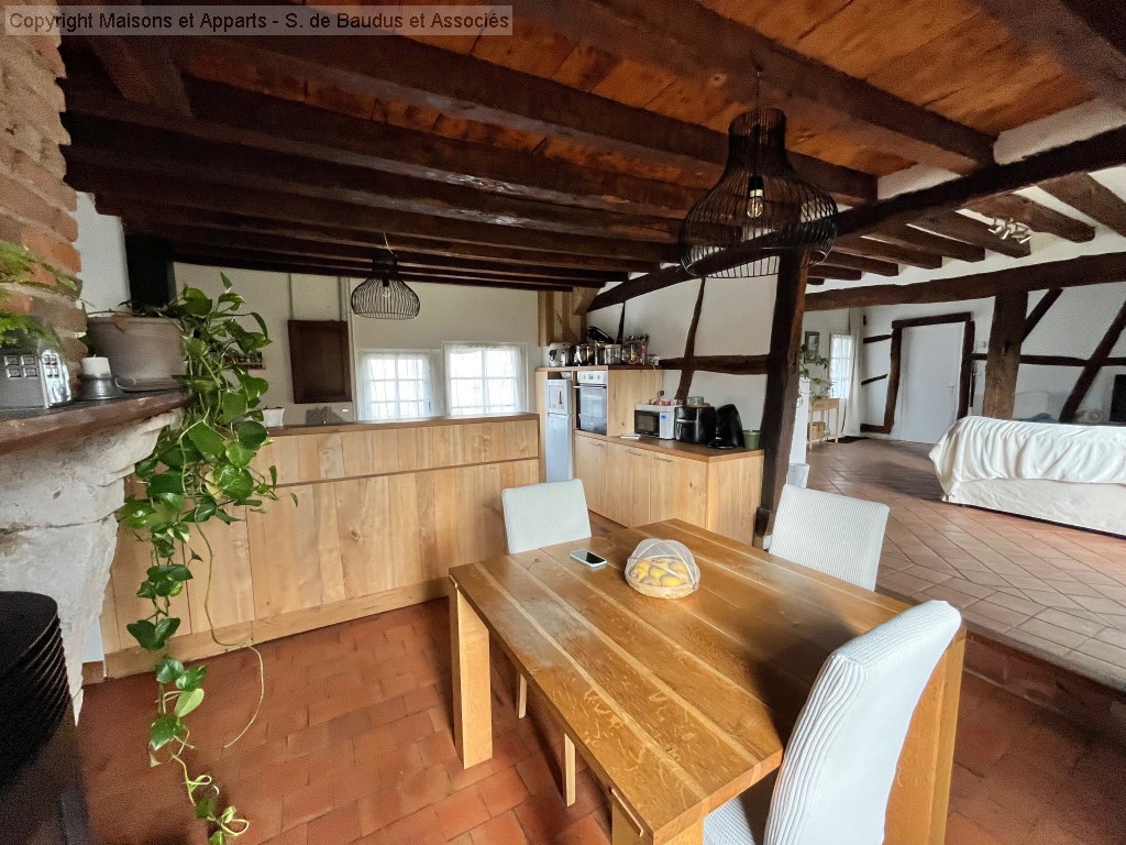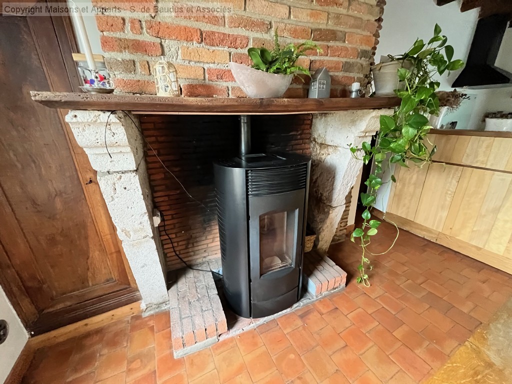 Tomettes, poutres, poële à bois, tout le charme de l'ancien rénové avec goût .