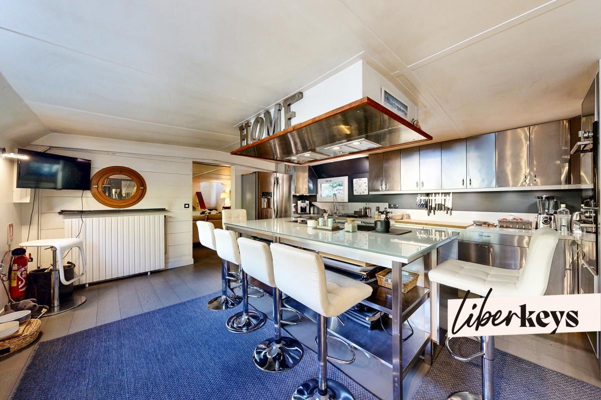 Bienvenue sur l'Île de la Jatte, à Neuilly-sur-Seine, où Liberkeys vous présente en exclusivité une péniche d'exception de 220 m².