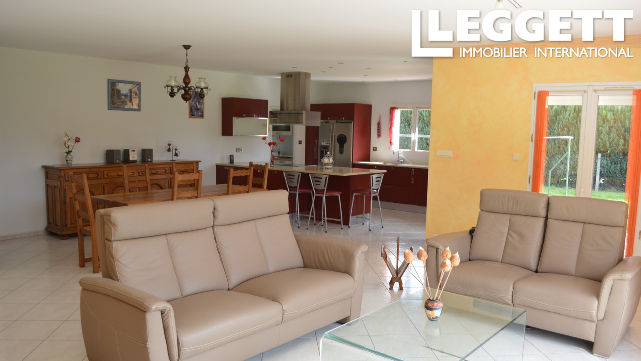 Cette agréable maison de plain-pied offre une surface généreuse de plus de 134 m², baignée de lumière naturelle. L'espace de vie est conçu pour la famille : une très grande pièce de vie ouverte sur une cuisine moderne pour des moments partagés. L'arrière-cuisine assure une fonctionnalité optimale.