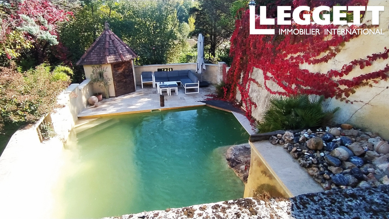 Une piscine creusée sur le roc avec une cascade offre un endroit idéal pour se rafraichir durant l'été .