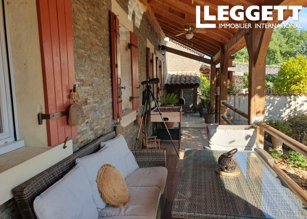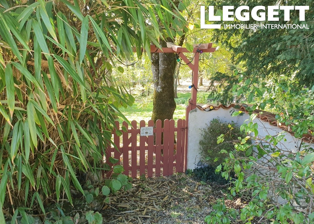 Appentis . et terrasse donnant sur le jardin arboré et ruisseau.