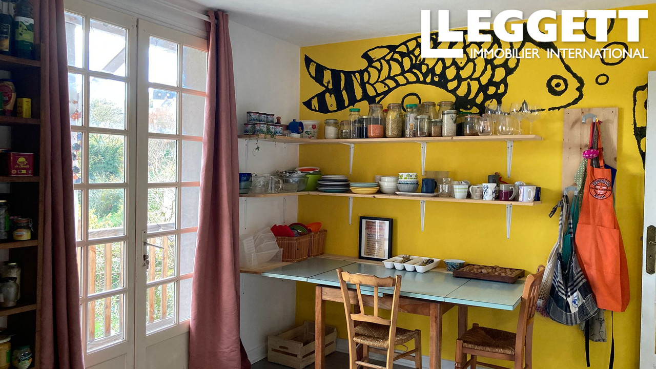 A40318JHC19 - Entrée de la boutique (77 m²) qui dispose également d'une kitchenette, toilettes et atelier/rangement. Entrée séparée de la maison : hall, couloir donnant accès à la boutique, à côté du garage/sous-sol et au jardin à l'arrière. Premier étage : palier, salon/salle à manger, cuisine avec balcon, bureau avec balcon, chambre, dressing, salle de bains avec lavabo et bidet, toilettes séparées. Deuxième étage : palier, salon ouvert avec balcon et kitchenette, trois chambres dont une avec accès au balcon, douche et toilettes. Grenier au-dessus. Jardin sur deux niveaux à l'arrière avec terrasse et arbres fruitiers. Vue sur la rivière. Sous-sol avec garage pour une voiture de taille moyenne, chaufferie (chaudière à pellets), rangement/atelier.