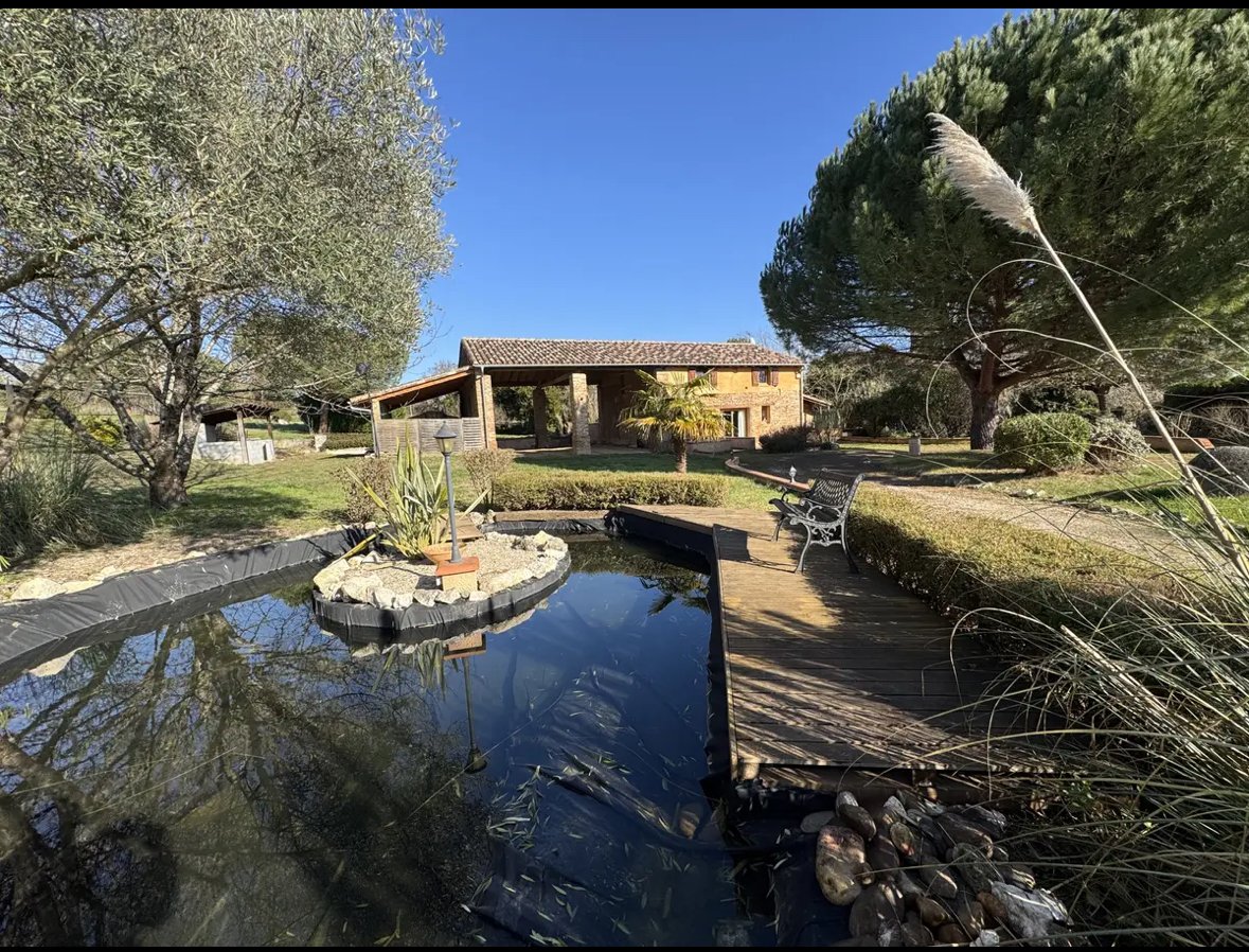 Située proche de Lévignac, cette ancienne grange de 145 m² baignée de lumière s'ouvre sur un terrain paysager de près de 5 000 m² avec verger, bassin et terrasses.