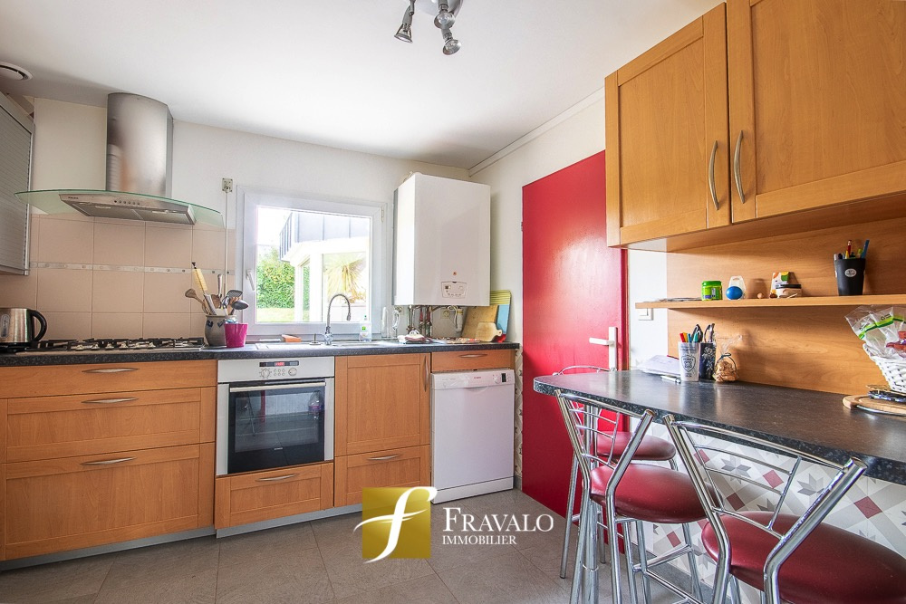 A deux pas du quartier de Beaupré Lalande à Vannes, sur la commune de Séné, venez découvrir cette maison de 154 m2 idéale pour une famille. Au rez-de-chaussée, vous trouverez une entrée avec placards, un bureau pouvant faire office de chambre (ou profession libérale), une pièce de vie avec insert, une cuisine aménagée-équipée, un wc, une suite parentale avec salle d'eau, une buanderie avec un double garage. L'étage dispose de quatre chambres, d'une salle de bains et d'un wc. Accès au port en 10 minutes, bus de ville à 300 m, commodités et écoles à 2 minutes. Estimation des coûts annuels d'énergie pour un usage standard du logement: entre 1390 EUR et 1940 EUR (abonnement compris). Les informations sur les risques auxquels ce bien est exposé sont disponibles sur le site Géorisques : georisques.gouv.fr