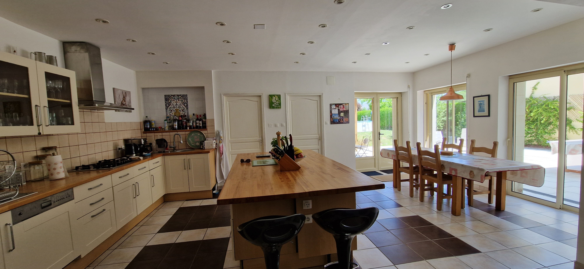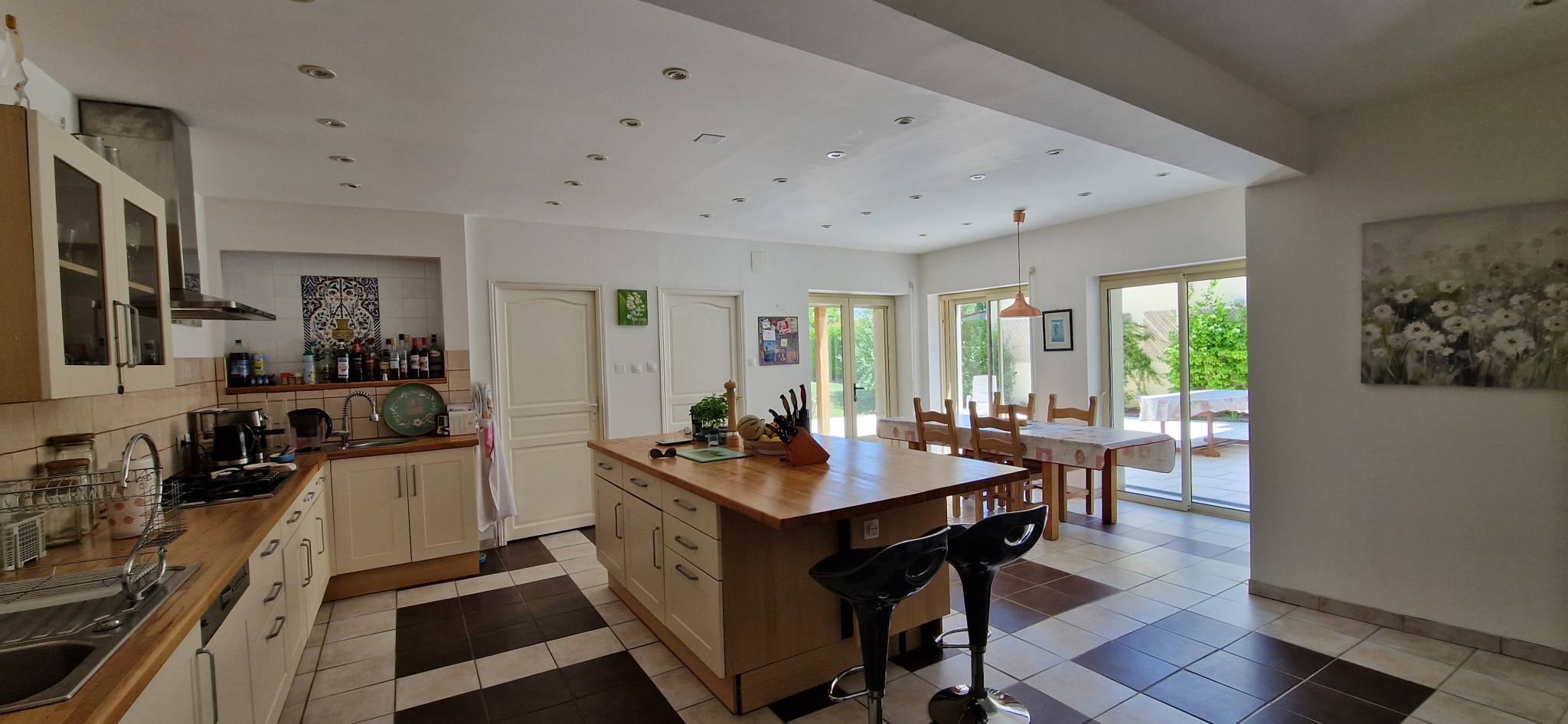 ELLE VOUS OFFRE 300 M2 HABITABLE ENV : UNE GRANDE CUISINE DINATOIRE AMENAGEE ET EQUIPEE DONNANT SUR TERRASSE, UN BEAU SALON DONNANT SUR TERRASSE DOMINANTE, 4 CHAMBRES AVEC CHACUNE SALLE D'EAU ET/OU SALLE DE BAINS (1 CHAMBRE AVEC SALLE D'EAU A FINIR D'AMENAGER), UN PETIT SALON ET UNE BUANDERIE/LINGERIE