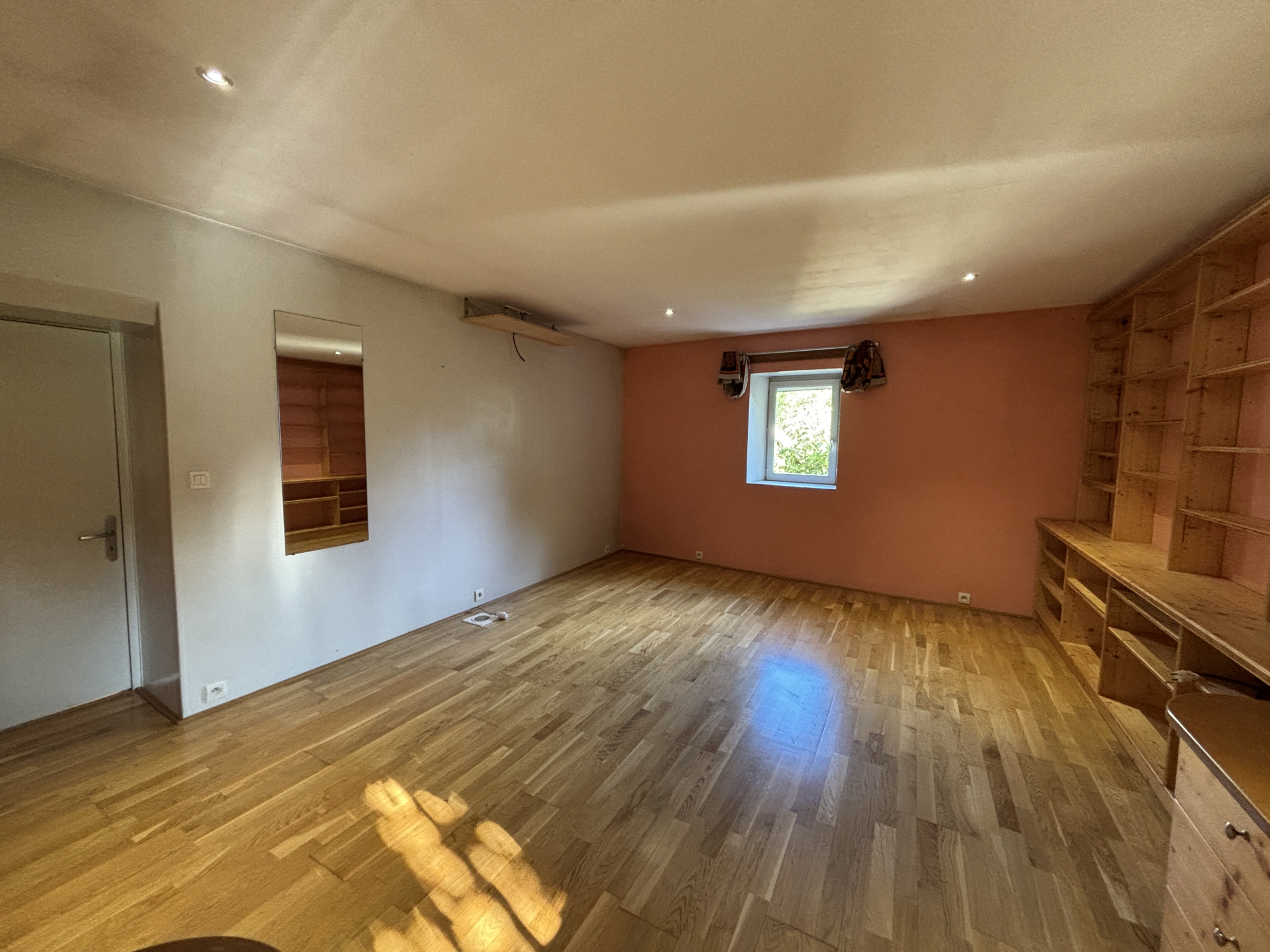 - A l'étage : cinq chambres dont 2 en enfilade (possibilité de relier avec le studio), une salle d'eau, W.C séparé
