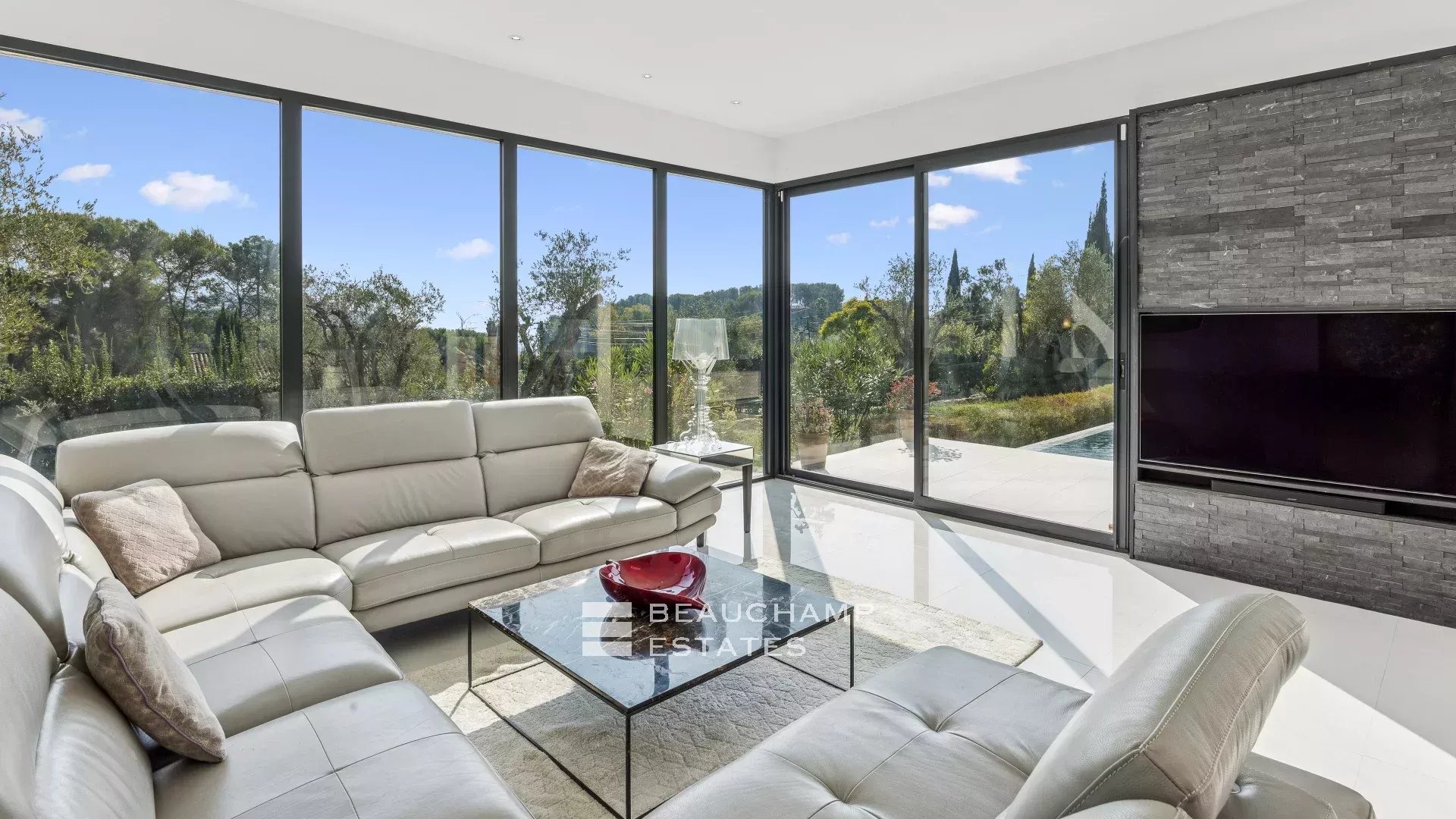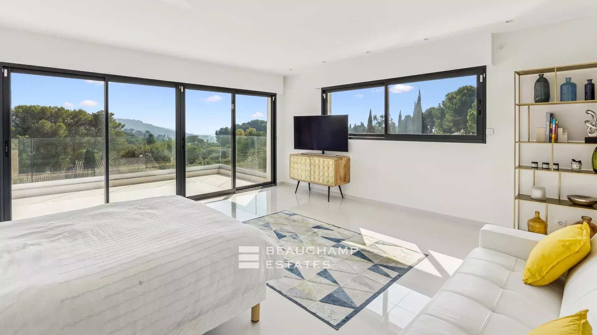 Située au calme absolu, dans un quartier recherché de Mougins, cette villa contemporaine de 314 m2 construite en 2017 offre tout le confort moderne et répond aux dernières normes et conformités.