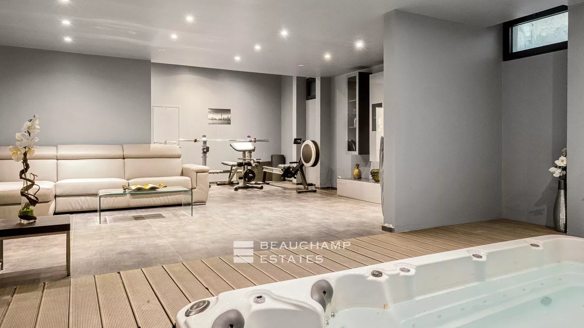 Les volumes généreux de la villa et son sous-sol de 70m2 aménagé en salle de sport et spa en font une maison harmonieuse à vivre.