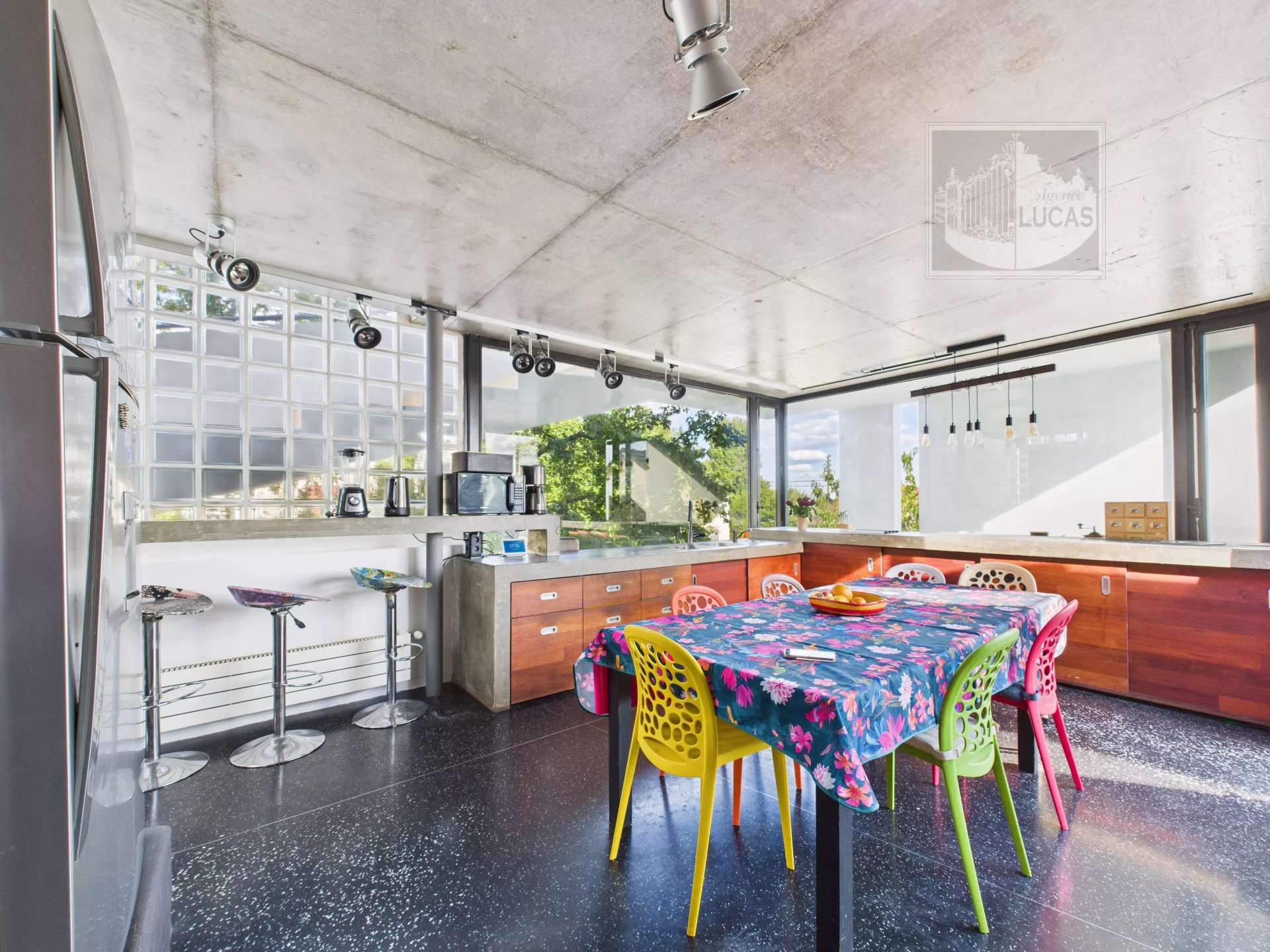 Découvrez cette maison en meulière, enrichie par une extension contemporaine signée par l’architecte Stéra. Pensée comme un espace unique, l’extension s’intègre à la maison d’origine et à son environnement. Elle se compose de terrasses en paliers et d’une grande rampe extérieure, offrant une perspective ouverte sur la largeur du terrain.