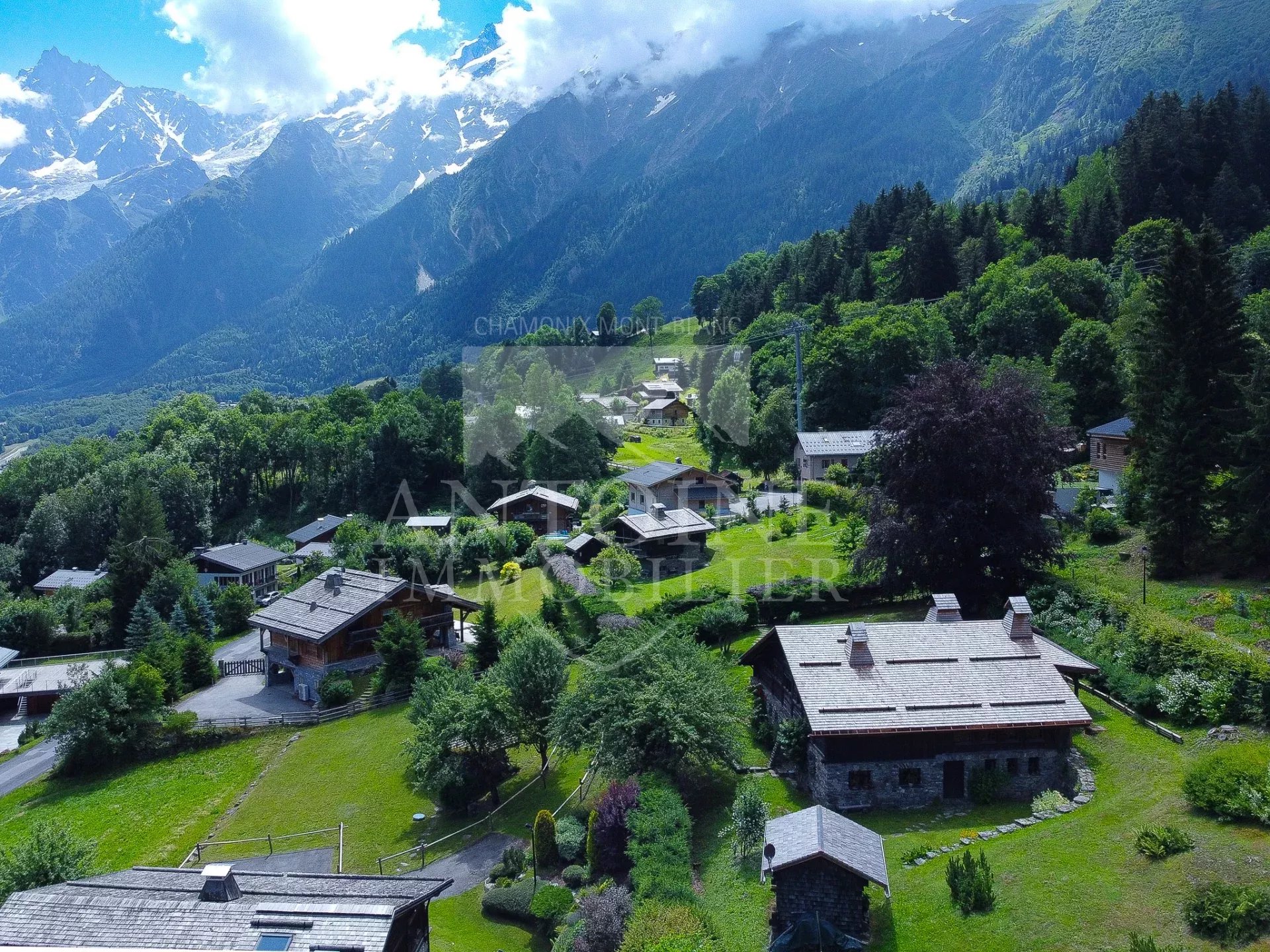 Antoine Immobilier vous présente cette propriété unique sur les hauteurs des Houches dans le secteur recherché des Chavants. En position dominante et offrant une vue spectaculaire sur l’ensemble de la chaine du Mont-Blanc, cette propriété est située sur un terrain de 1 460 m2 et comprend une ferme ancienne traditionnelle de toute beauté.