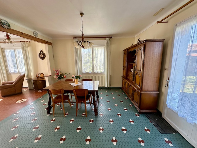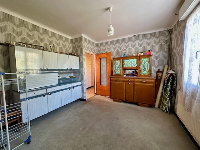 Maison d'habitation à rénover intérieurement comprenant : un salon, une salle à manger , une cuisine, 3 chambres, une salle de douche, un WC, un atelier et un garage.