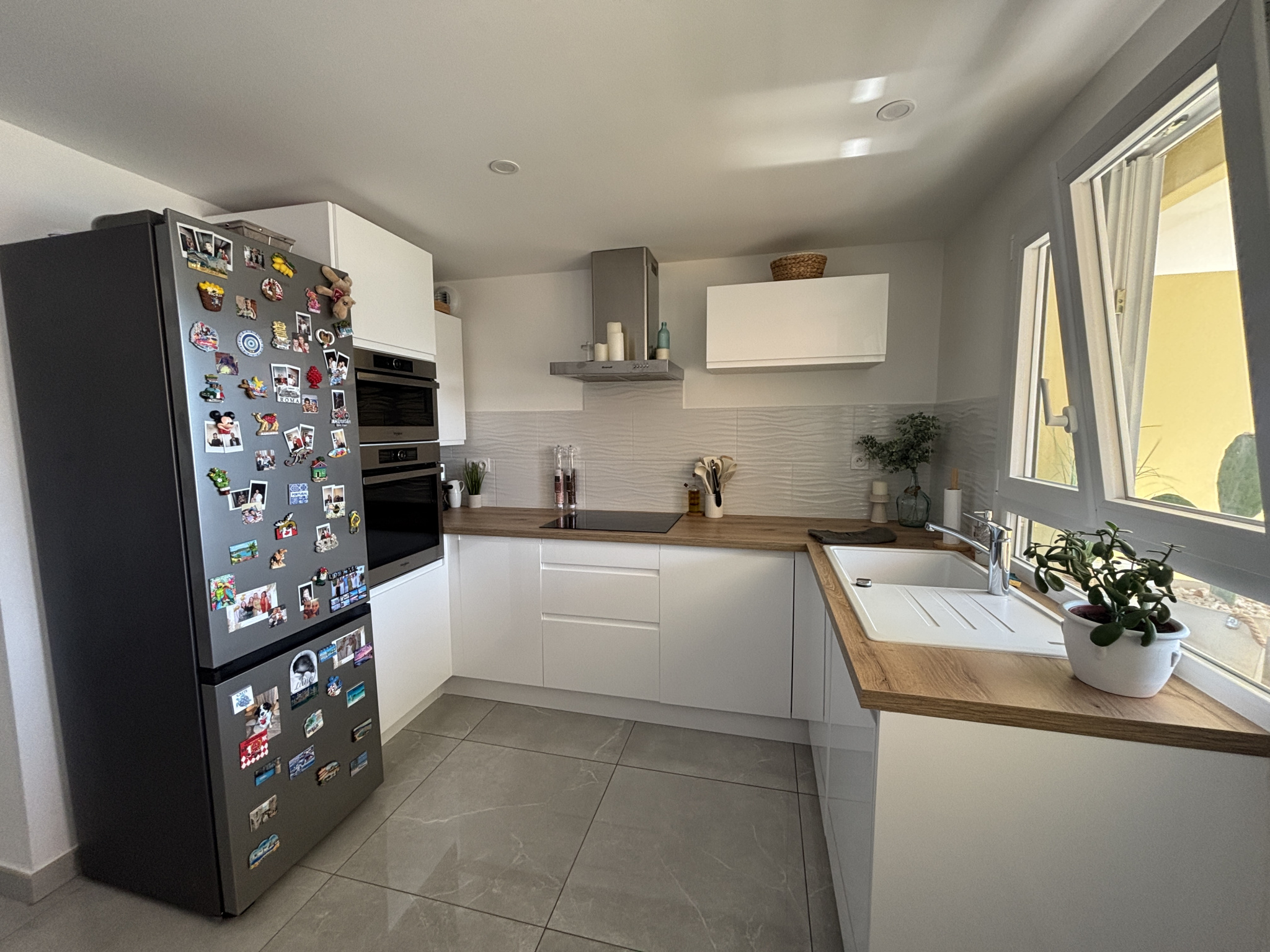 Une pièce de vie avec salon-séjour lumineux et cuisine ouverte entièrement équipée. Cet espace de vie donne accès à une terrasse de 11 m2 exposée au sud.