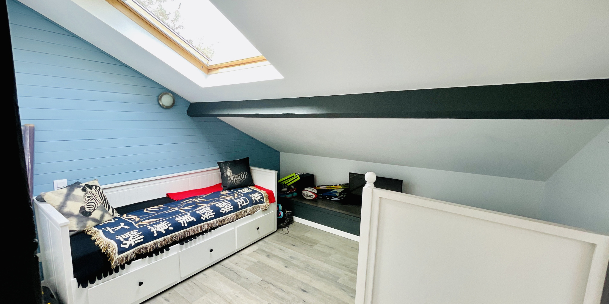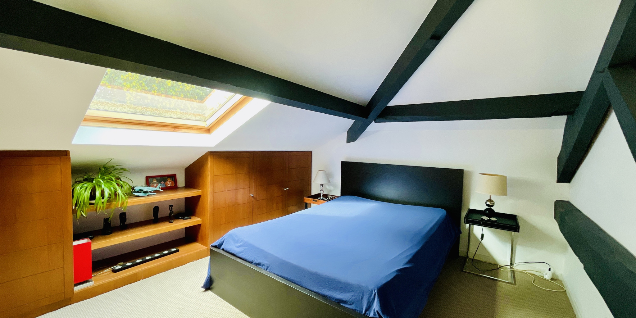 À l'étage, un vaste palier donne accès à deux chambres dont une avec verrière.