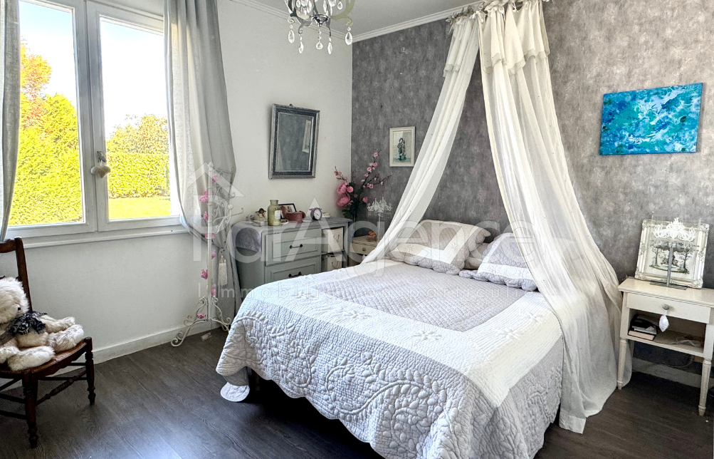 Le garage attenant abrite une chambre mansardée de 10 m2 utiles avec lavabo et WC, idéale pour accueillir famille ou amis. À l'extérieur, deux abris de jardin et une piscine 8x4 viennent parfaire ce cadre agréable et fonctionnel.