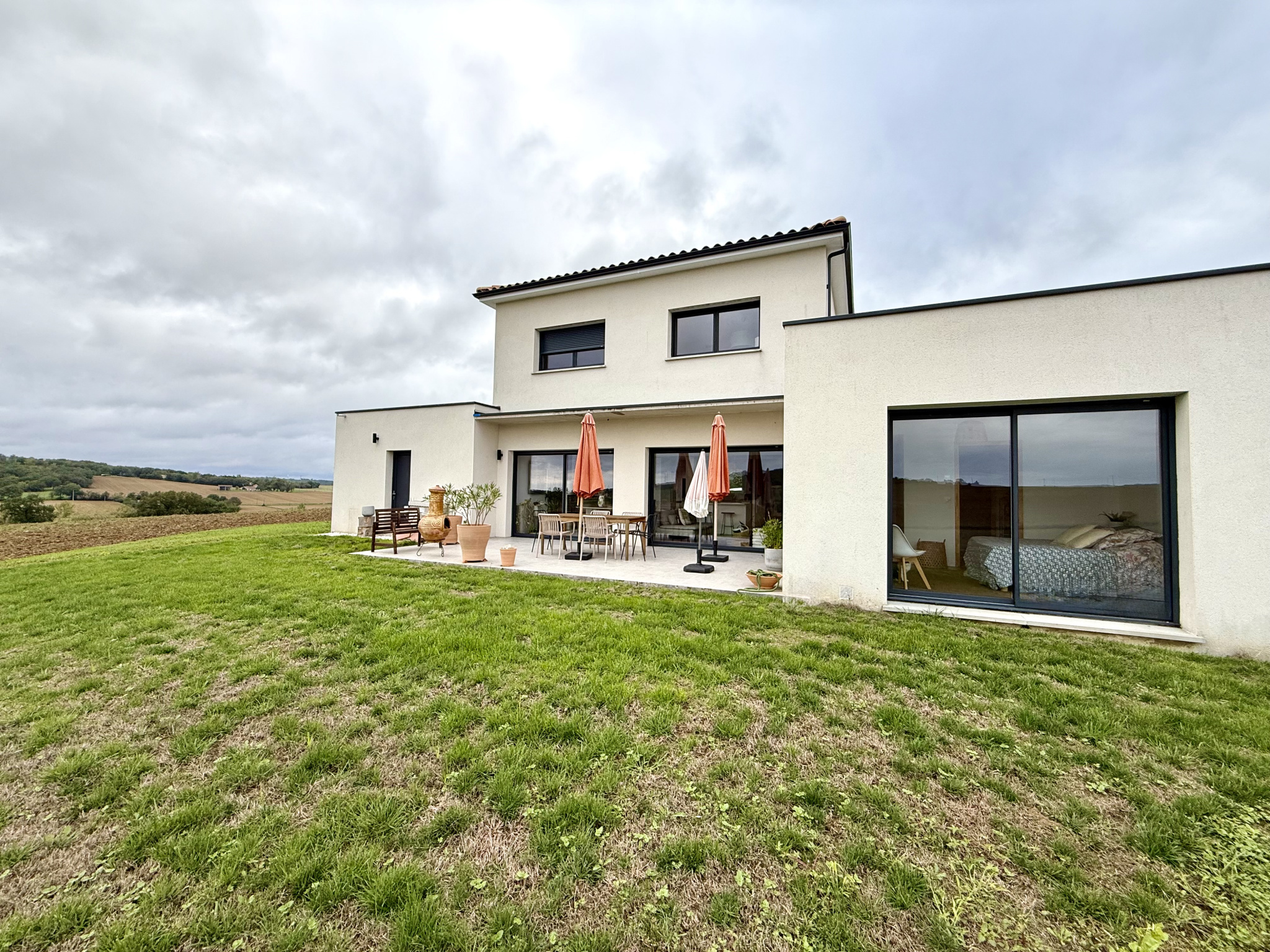 En pleine campagne, à 5 min de Fontenilles et de la RN 124, venez découvrir cette magnifique maison neuve contemporaine, nichée sur un terrain de plus de 2000m2 avec une vue imprenable sur les vallons et la forêt environnante.