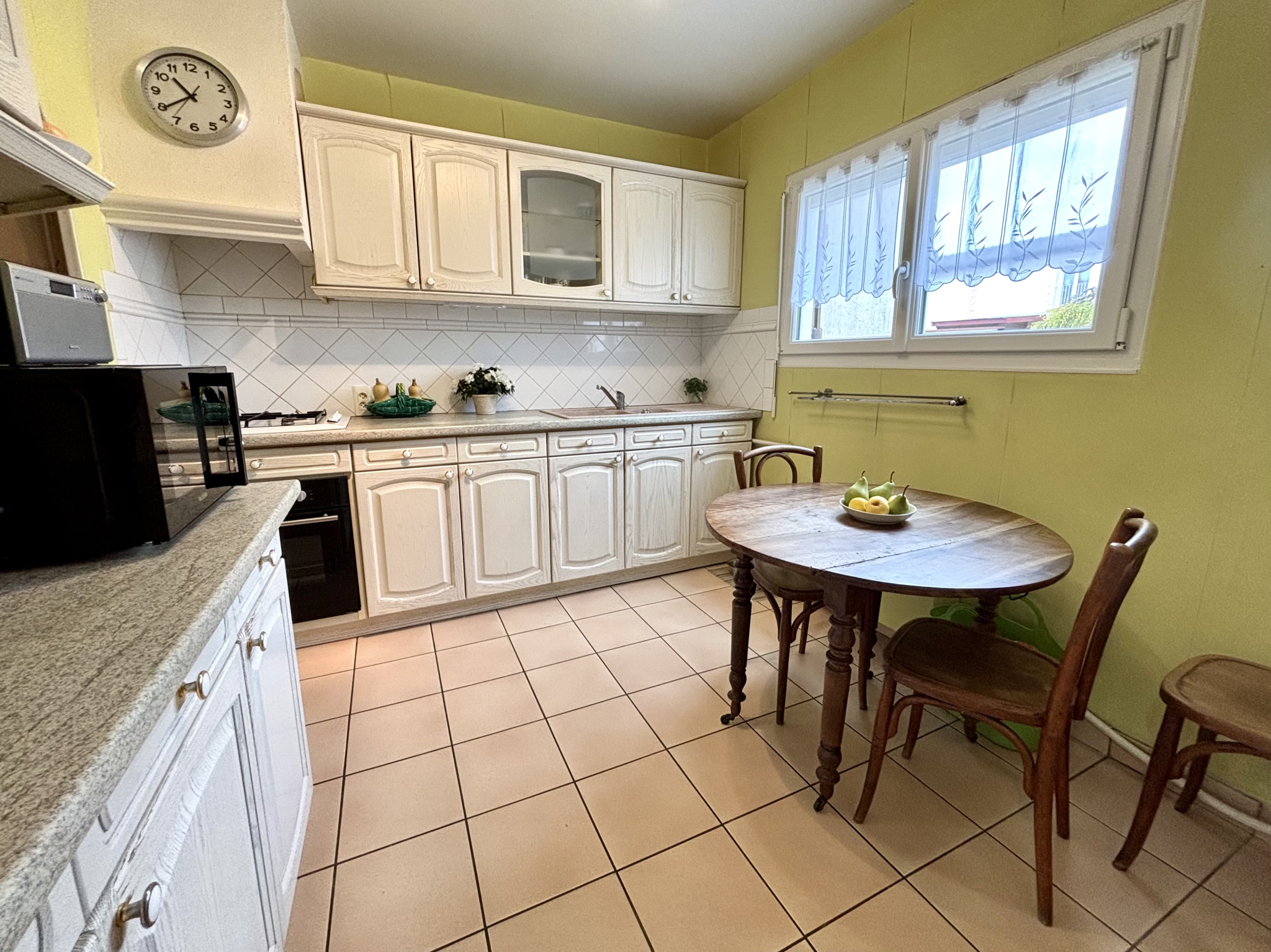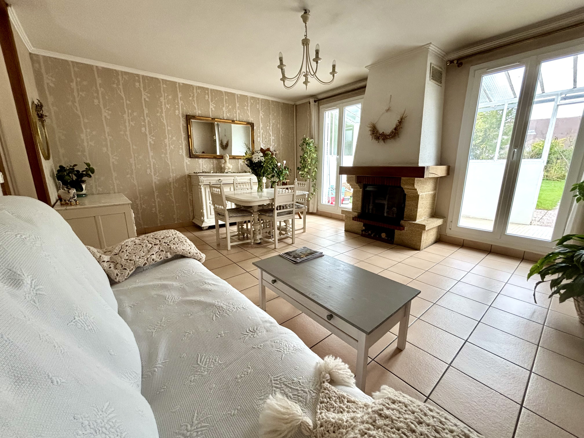 Découvrez cette jolie maison située au coeur d'un quartier calme et recherché, idéale pour une famille.Au rez-de-chaussée, elle offre un séjour avec cheminée, une cuisine fonctionnelle avec buanderie attenante, un WC et de nombreux placards de rangement.À l'étage, vous trouverez trois chambres, une salle de bains, un WC indépendant et des placards intégrés.Une véranda s'ouvre sur un joli jardin de 181m2, et un garage complète ce bien.