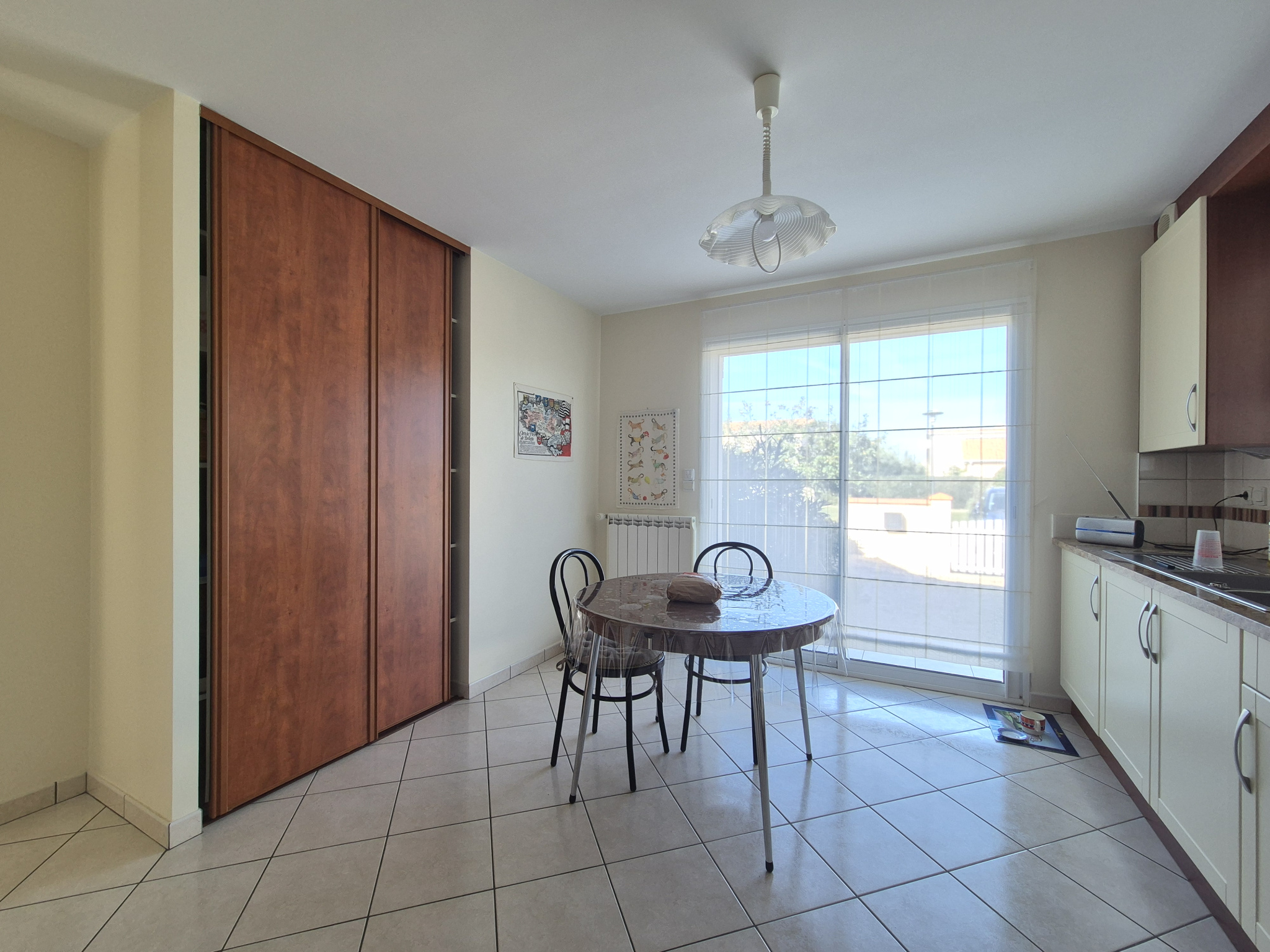 Sur une belle parcelle d' environ 700m2, maison non mitoyenne en excellent état et au calme d'une impasse comprenant une entrée avec placard, un grand salon-séjour très lumineux avec belle hauteur sous plafond et équipé d'un poêle à bois donnant sur une 1ère terrasse exposée SUD-OUEST, une cuisine aménagée et équipée, une arrière-cuisine avec accès garage, deux belles chambres de 14m2 avec placards, une salle de d'eau et WC séparés.