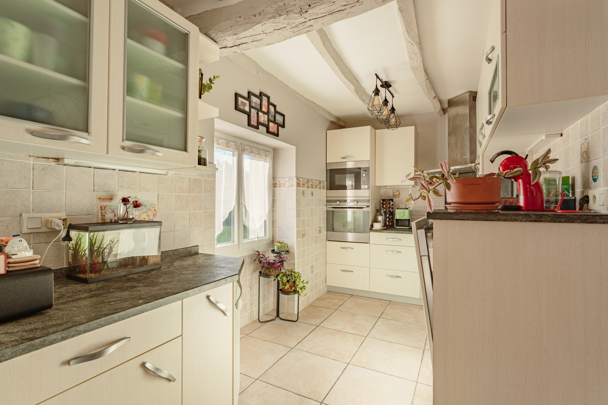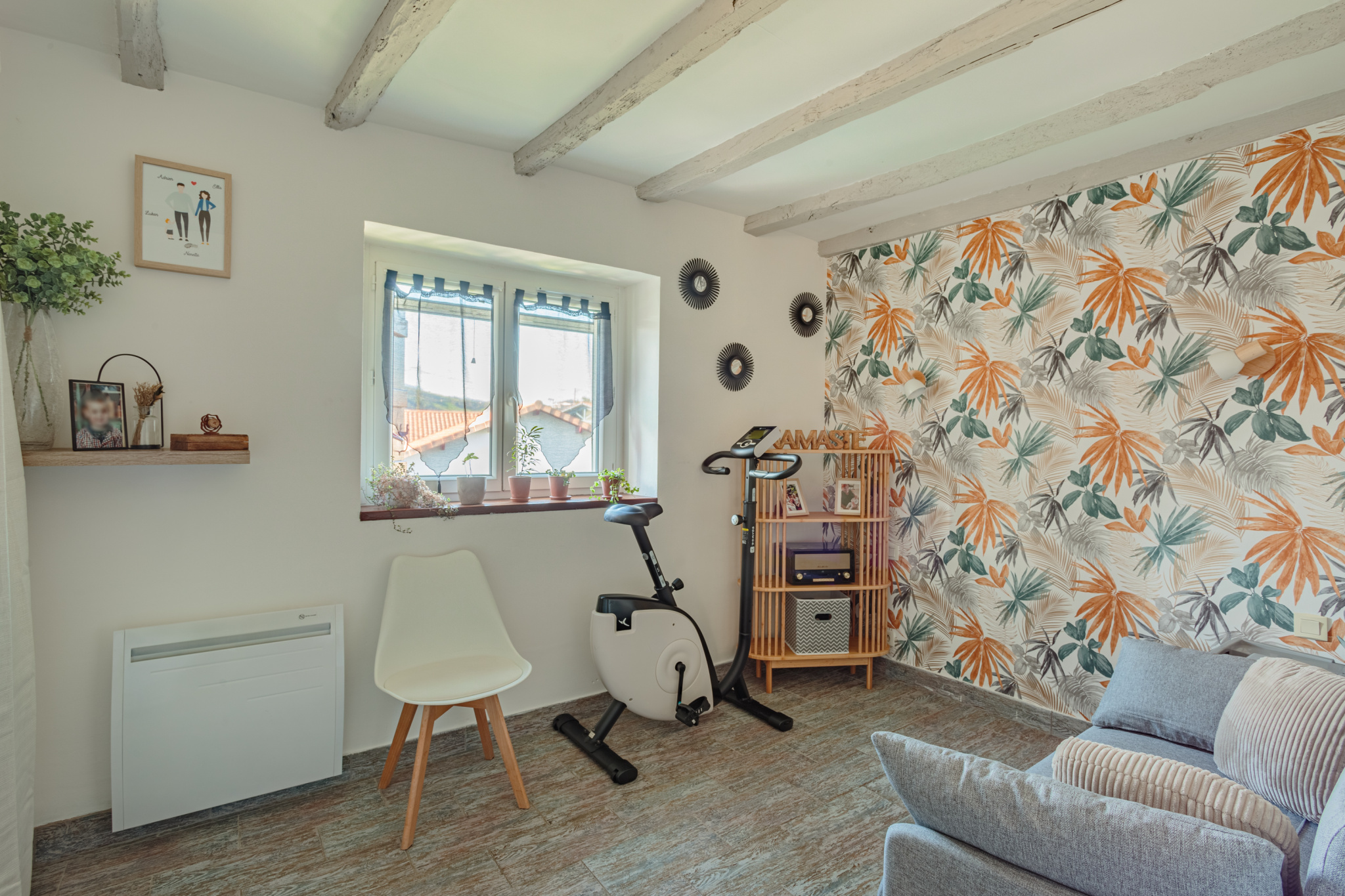 À seulement 3 km du bourg, dans un environnement calme, situé au 1er et dernier étage d'une maison, ce logement de type 4 (87 m2) est un parfait compromis entre maison et appartement. En très bon état, il bénéficie d'une lumineuse pièce de vie d'environ 40 m2, avec cuisine ouverte entièrement aménagée, cheminée et balcon. L'espace nuit comprend 3 chambres avec rangements, une salle de bain et des toilettes séparées. En bonus, les combles sont aménageables. Côté extérieur, vous profiterez d'un jardin privatif, d'une piscine et d'un garage. Pas de charge.
