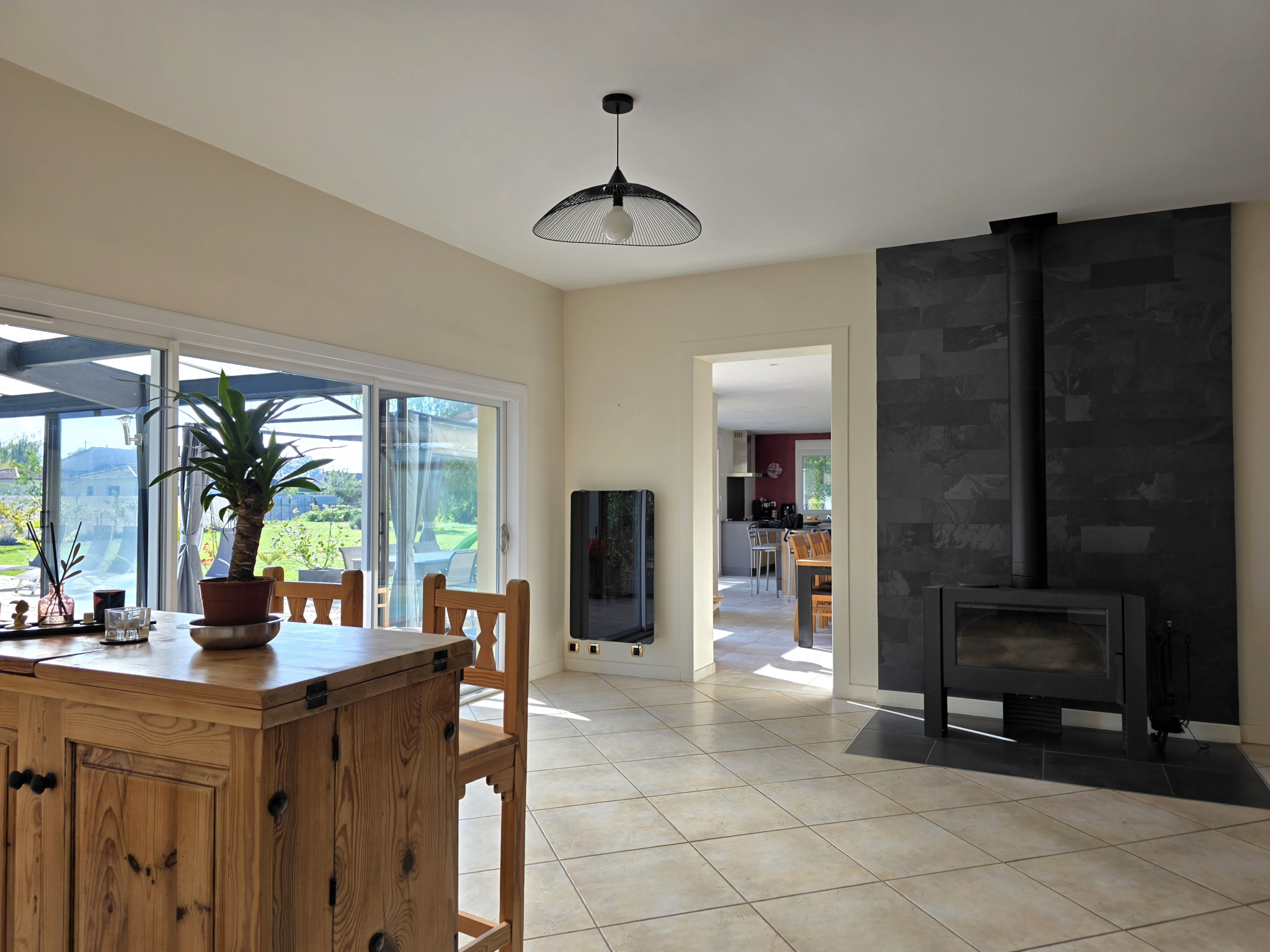 Les prestations sont modernes et de qualité : poêle à bois labellisé flamme verte, menuiseries aluminium double vitrage, volets électriques, domotique, porte de garage et portail électriques, chauffage de la piscine par pompe à chaleur air/eau.