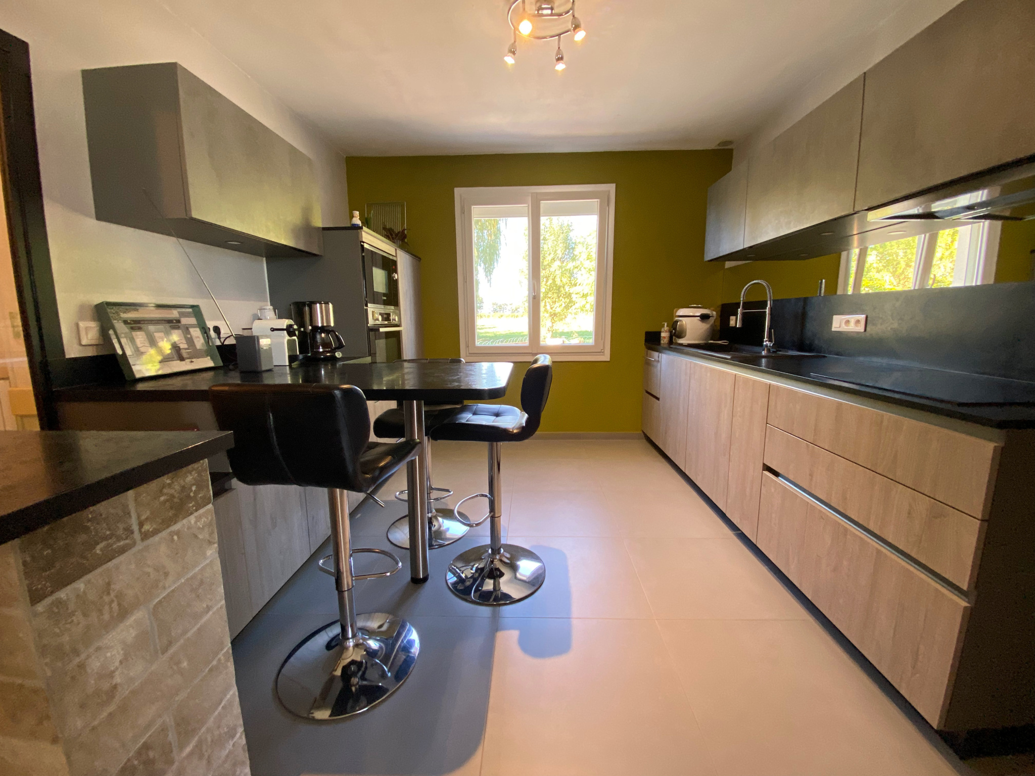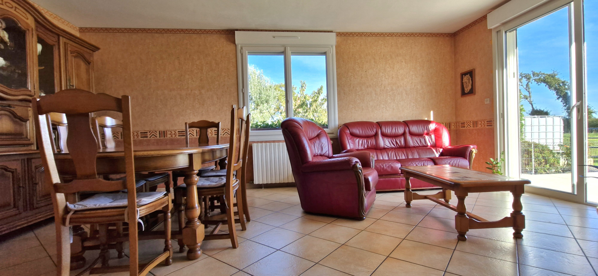 La maison offre un bel espace de vie, salon-séjour avec cheminée et cuisine ouverte, quatre chambres, une salle d'eau et buanderie. Ses atouts : un confort moderne (chaudière à pellets, menuiseries et assainissement récents).