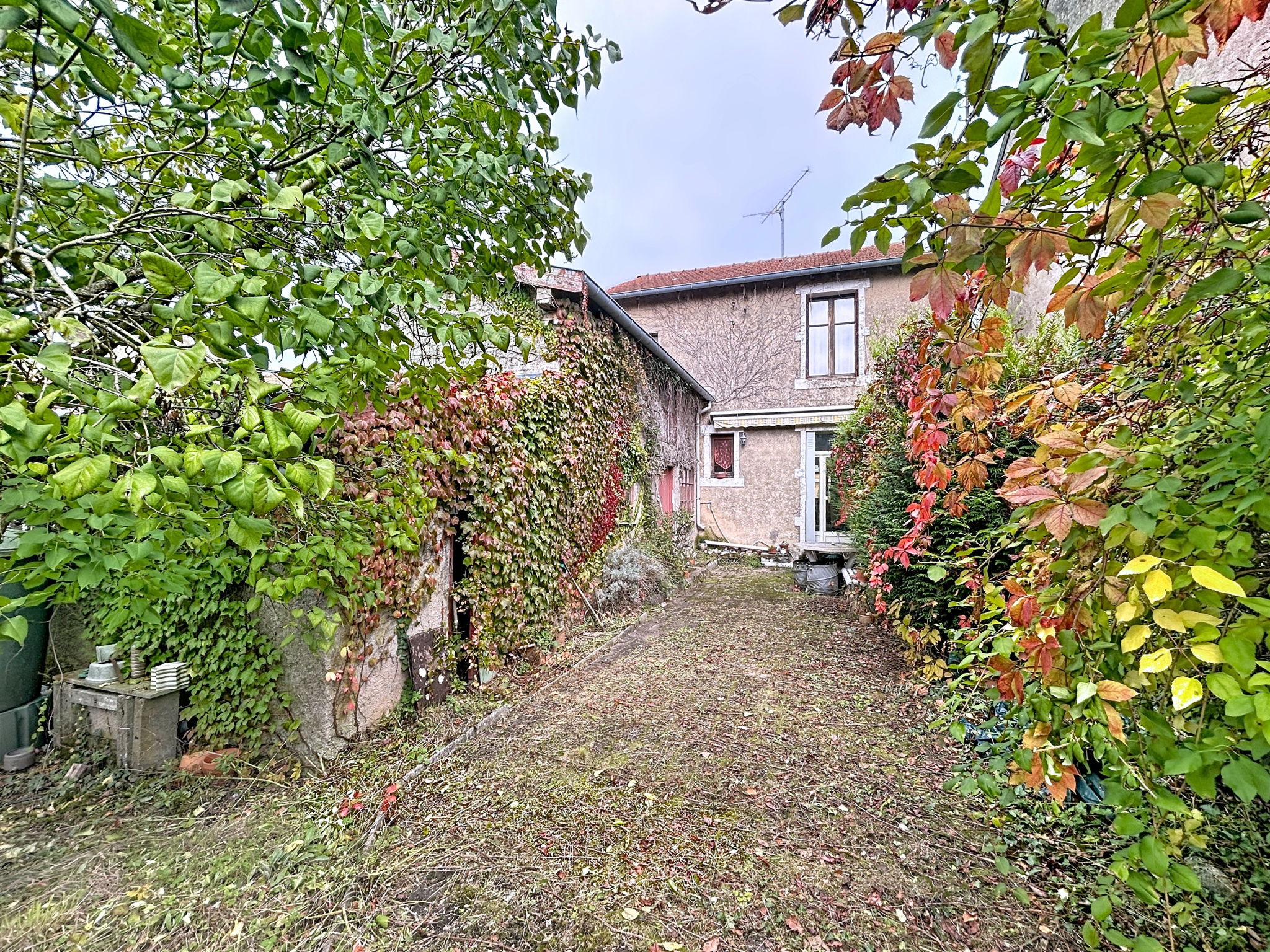 Terrain en nature de cour en façade et jardin et verger sur l'arrière.