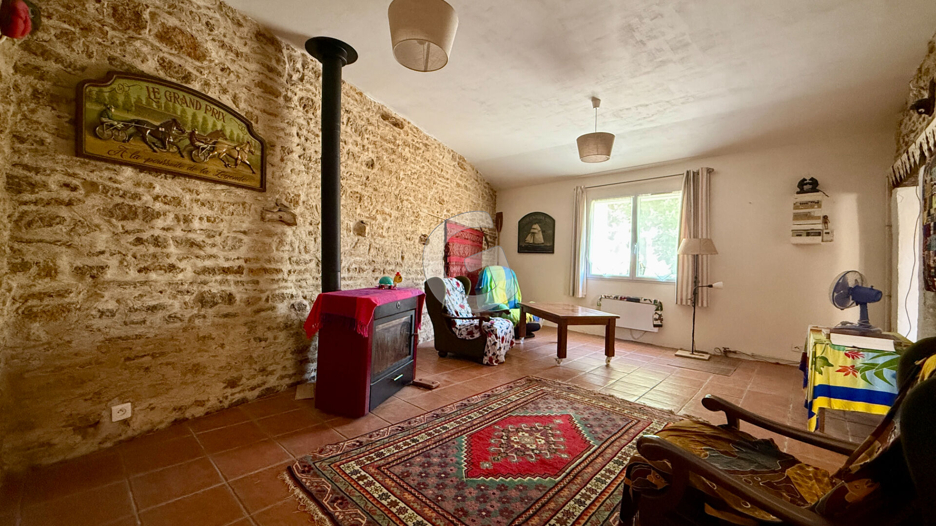 A vendre belle maison en pierre sur la commune de Saint Cyr en Talmondais, elle se compose d'une entrée, un salon, un séjour avec poêle à bois ouvert sur la cuisine aménagée, deux chambres, une salle d'eau, un wc séparé.