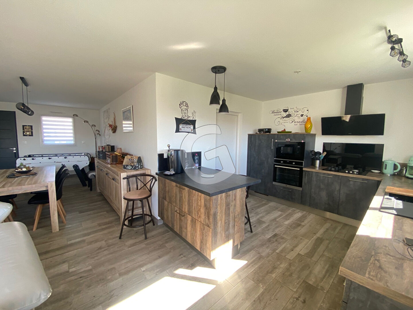 Environ 81m² habitables plus un garage, trois belles chambres et une cuisine aménagée et équipée ouverte sur le séjour.