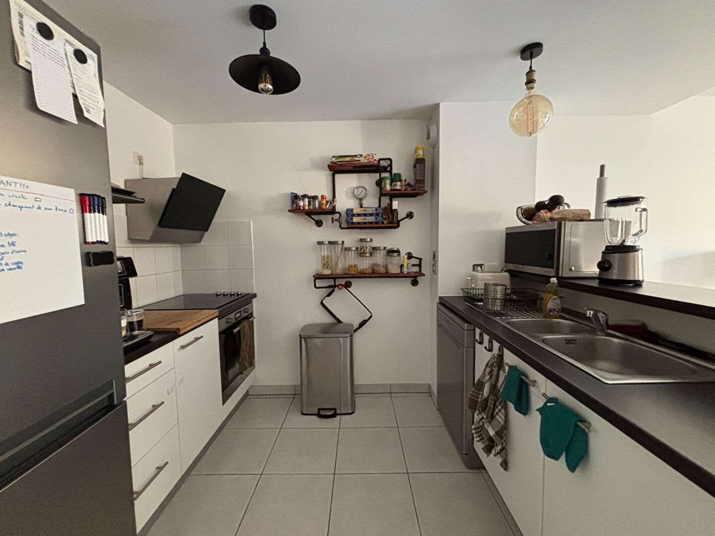 Entrée sur salon/séjour/cuisine lumineux donnant sur une belle terrasse pleins Sud arboré de 27m2, 1 Wc cellier.