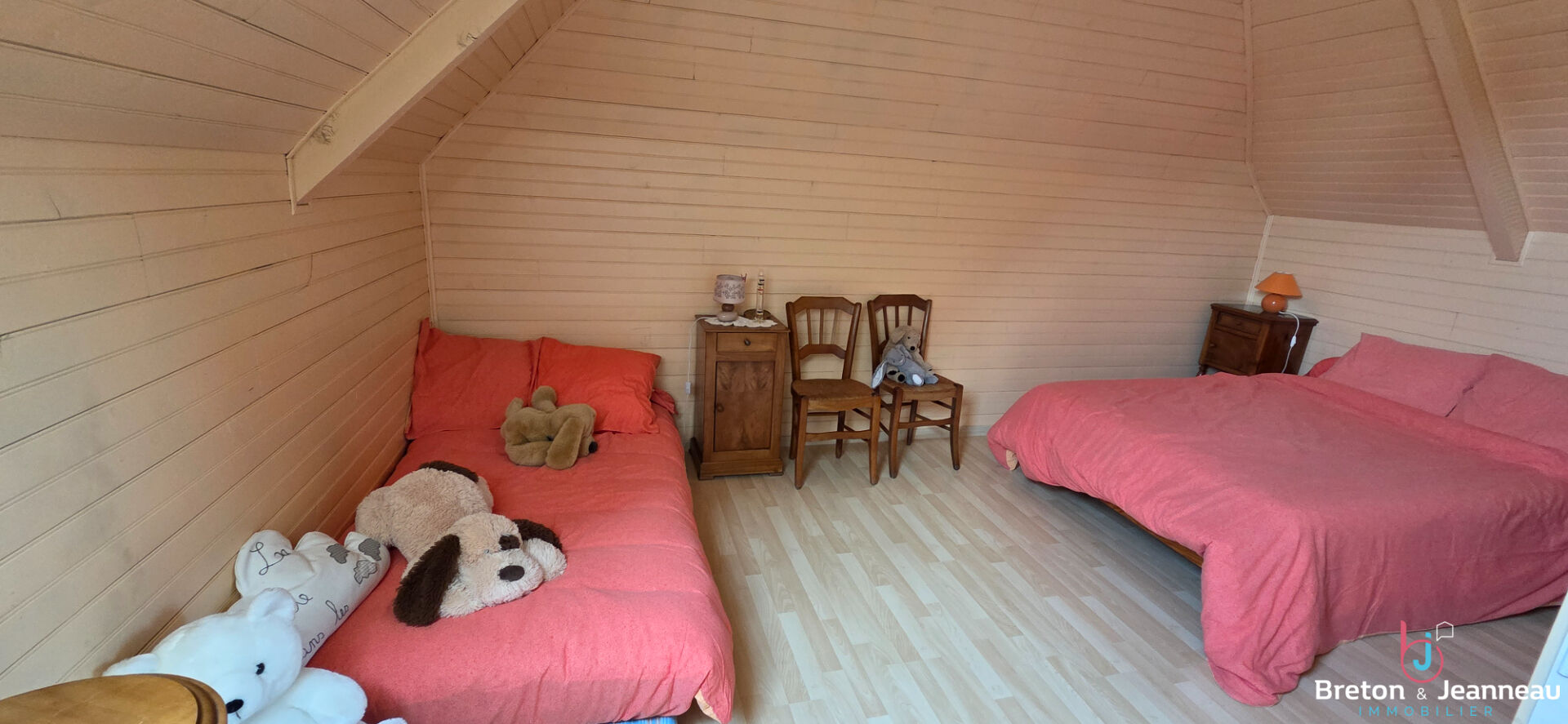 À l'étage, deux chambres spacieuses vous attendent, une salle d'eau avec wc. L'isolation en laine de verre et la toiture en tuiles garantissent une température agréable toute l'année.