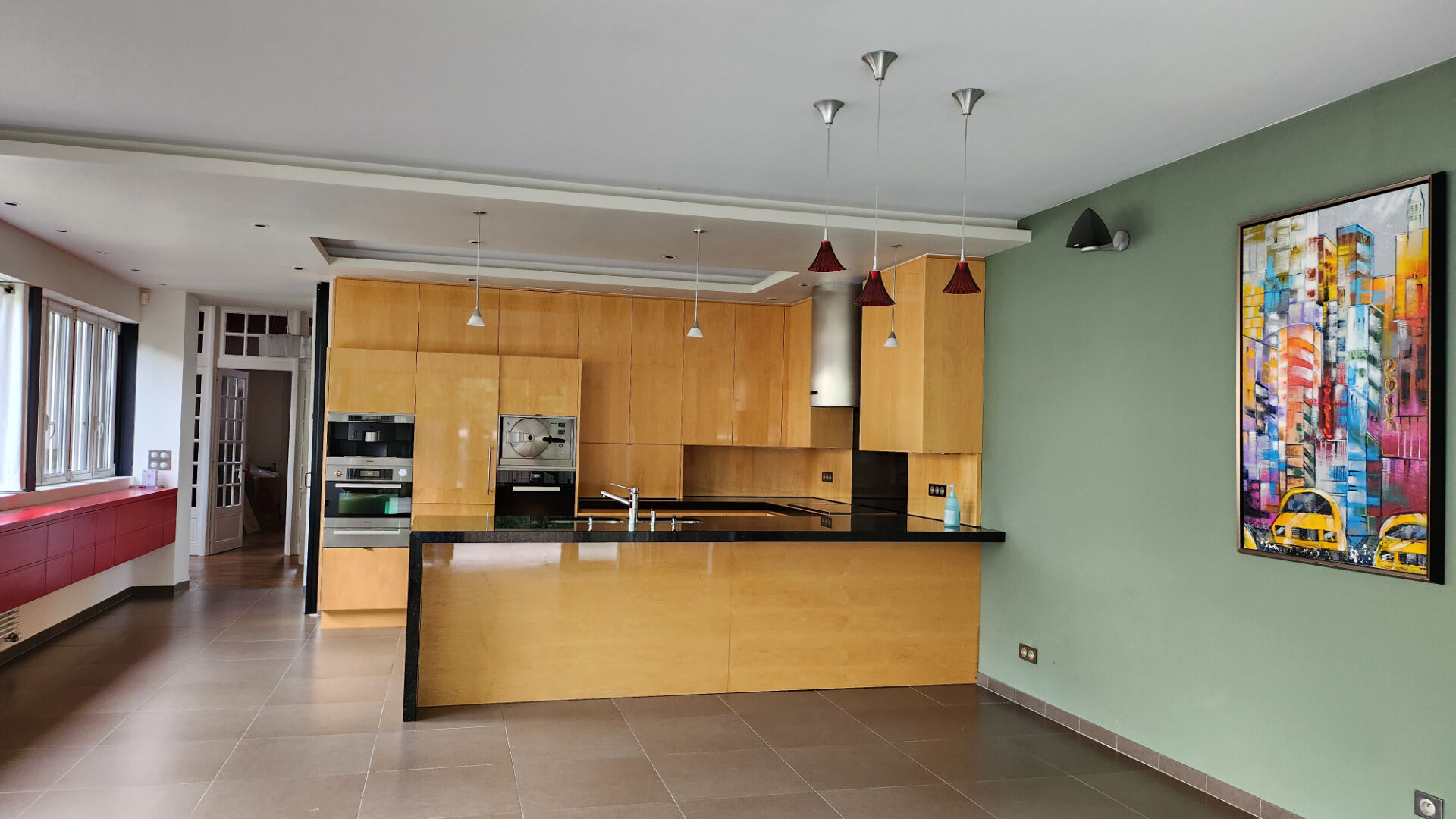 Une cuisine aménagée et équipée de haute qualité, avec un espace repas lumineux donnant sur une grande terrasse idéale pour vos moments conviviaux.