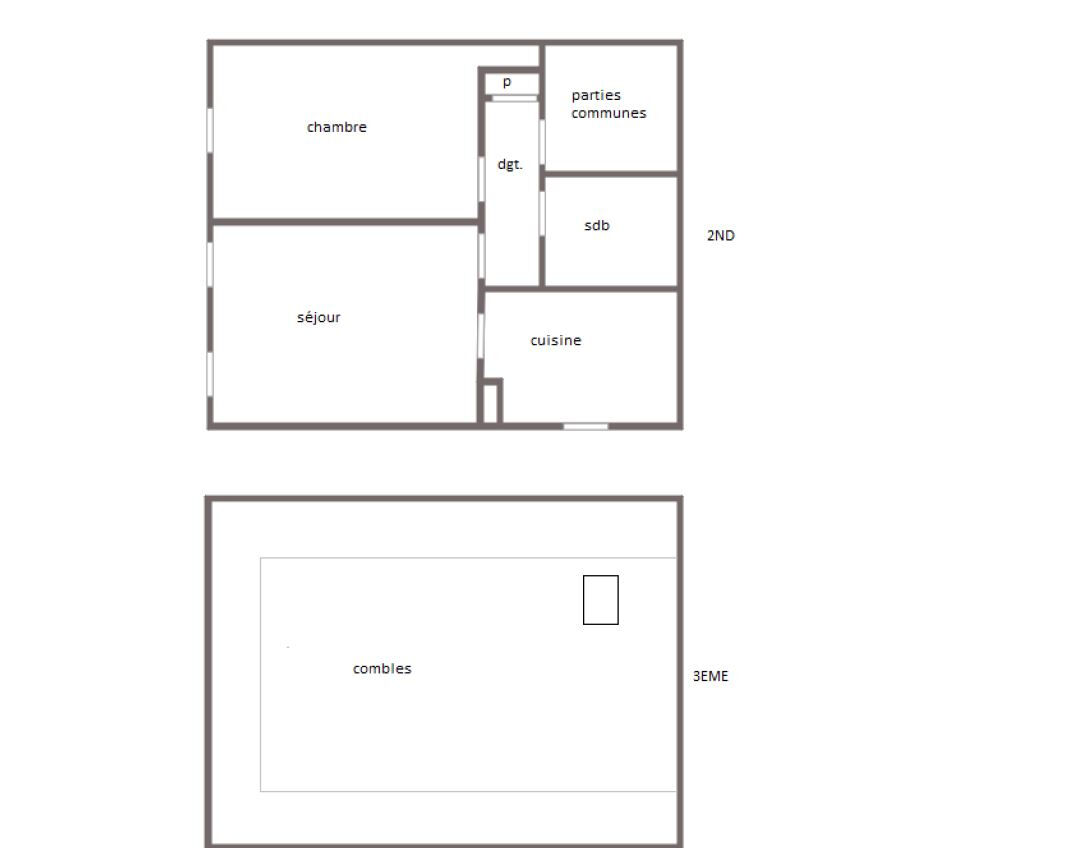 Appartement T2 avec cave et combles aménageables (environ 13 m²), comprenant entrée avec placard, chambre, séjour, cuisine et salle d'eau avec WC. Petite copropriété avec faibles charges.