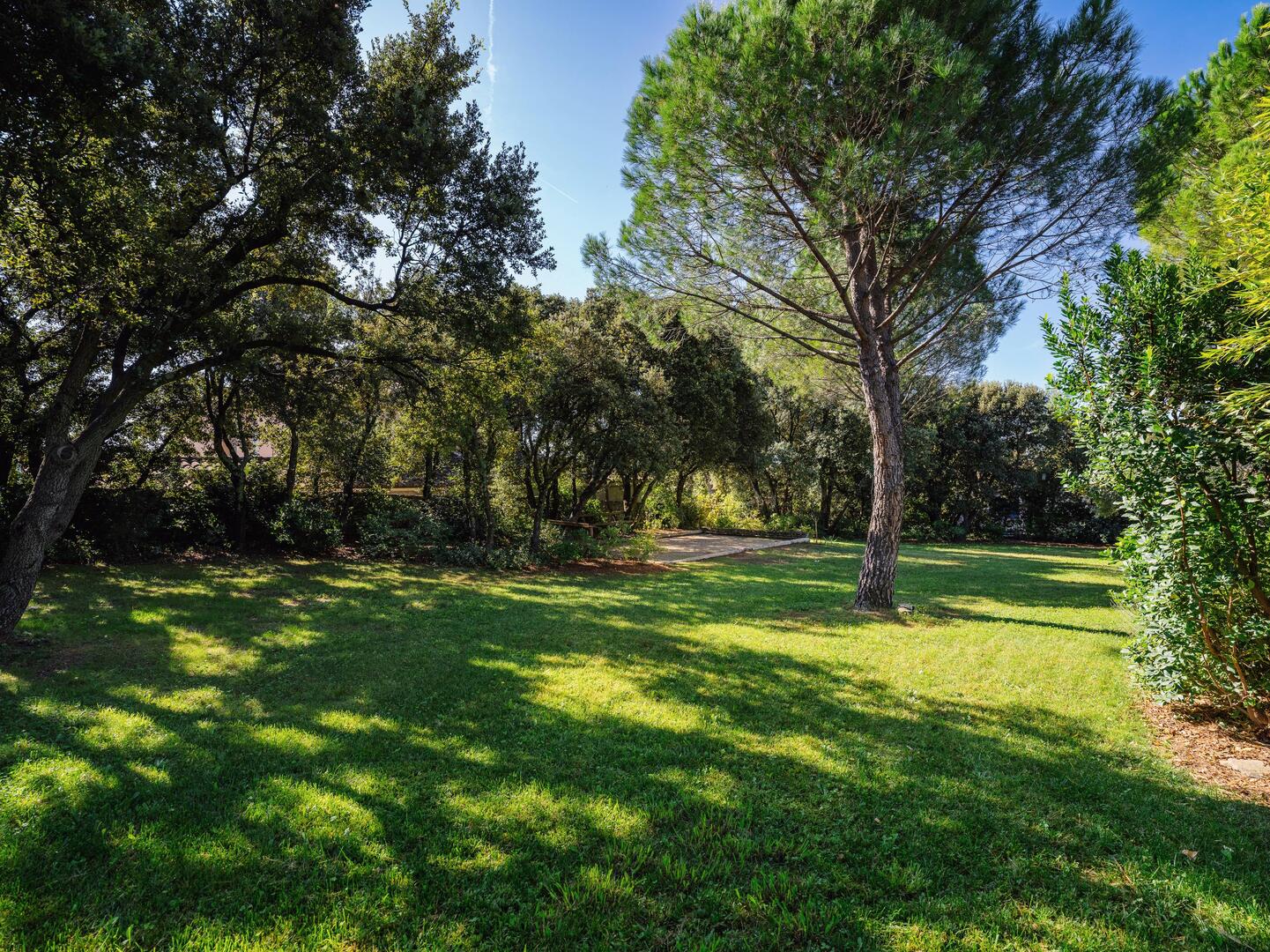 La propriété est entièrement clôturée, avec de beaux aménagements paysagers, une piscine chauffée, et un pool house. Elle dispose également de nombreux équipements confortables, tels qu’un double garage et un arrosage automatique.