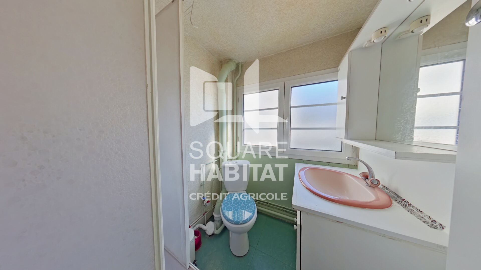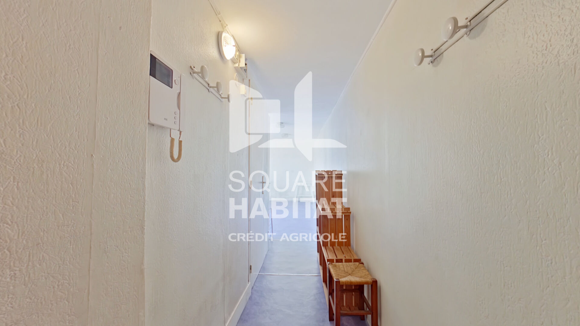 Superficie : 19,30m² (séjour de 12.65m², entrée de 3.76m² et salle d'eau avec wc de 2.89m²)