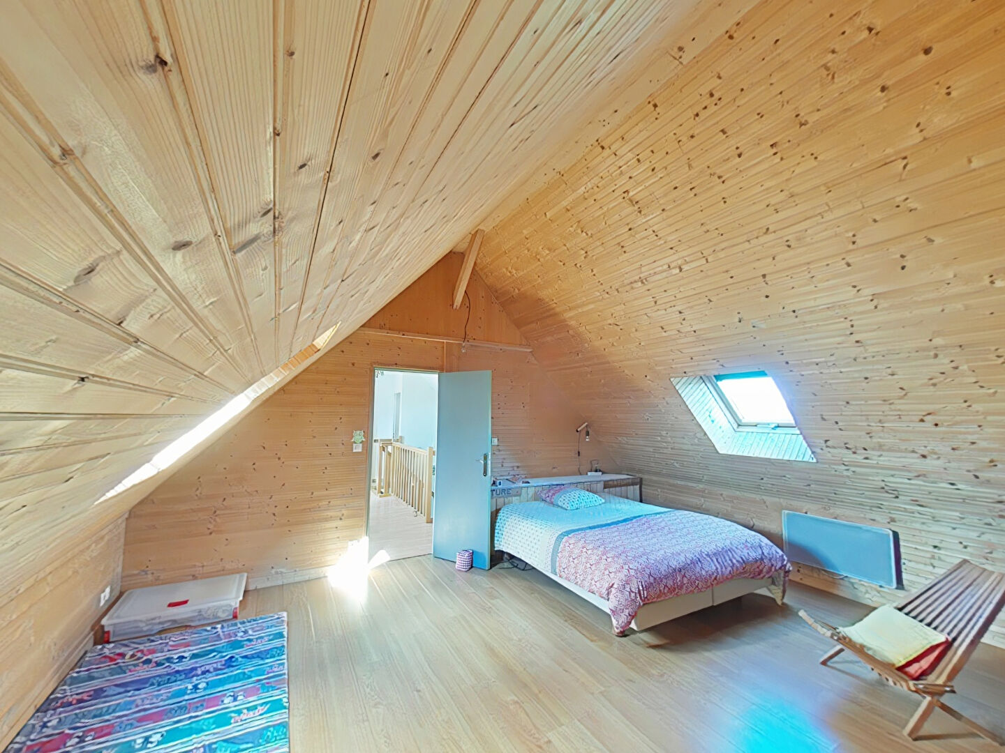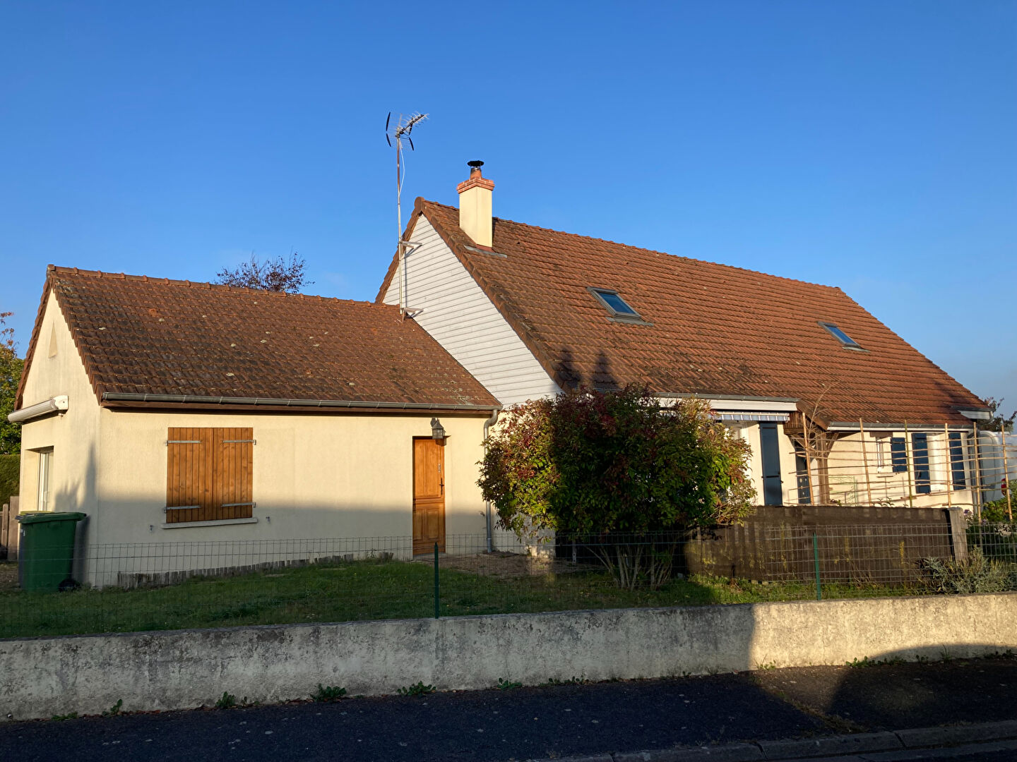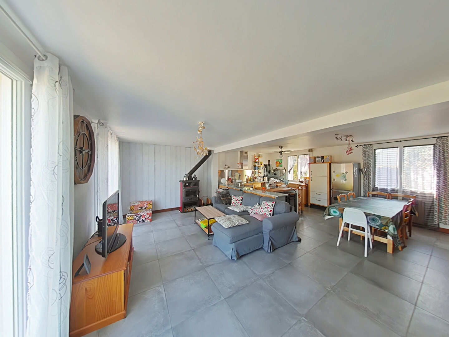 Estelle vous propose cette belle maison idéalement située, offrant  de plain pied une entrée, une pièce de vie avec un poêle à bois et une cuisine aménagée et équipée, deux chambres, une salle de bain, WC , placards; au 1er niveau une pièce mezzanine desservant deux chambres , une salle d'eau et WC. Buanderie et garage accolé avec grenier au dessus.
