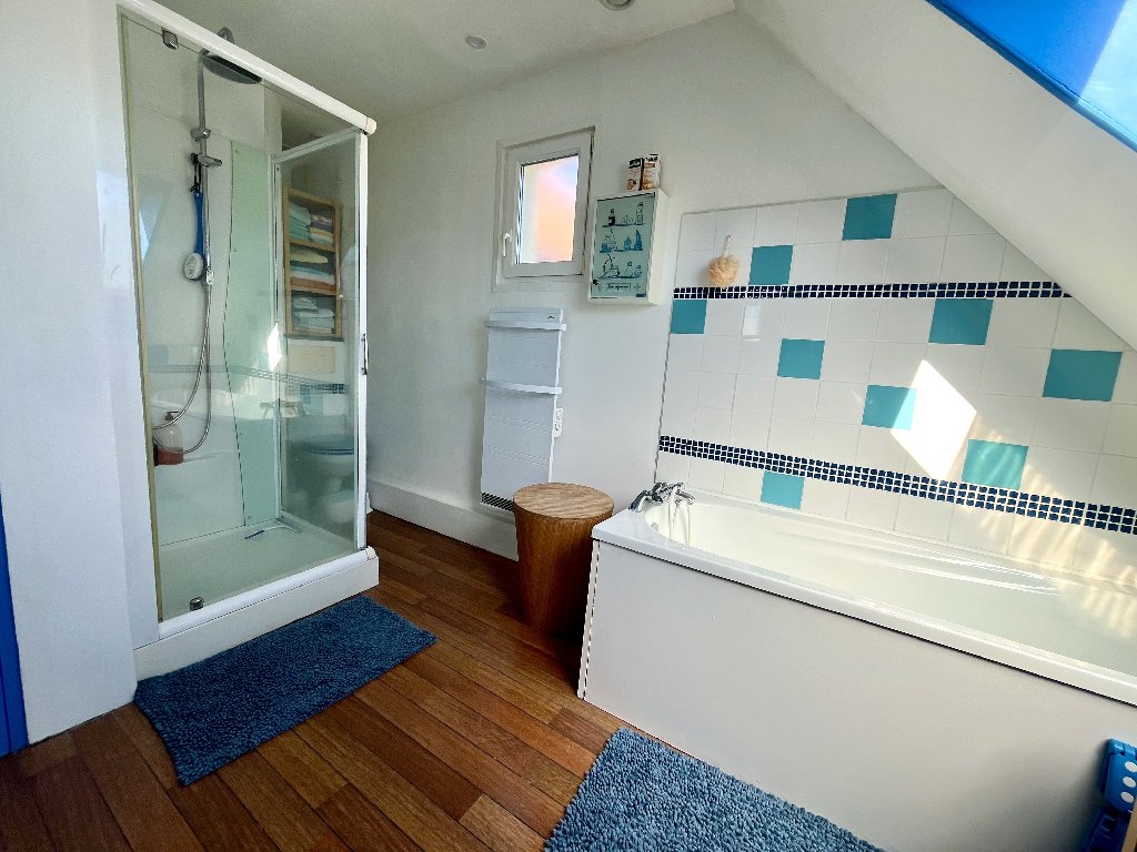L'étage est entièrement dédié au repos avec trois chambres et une salle de bain avec WC. Au dernier étage une pièce mansardée, aménagée en atelier.