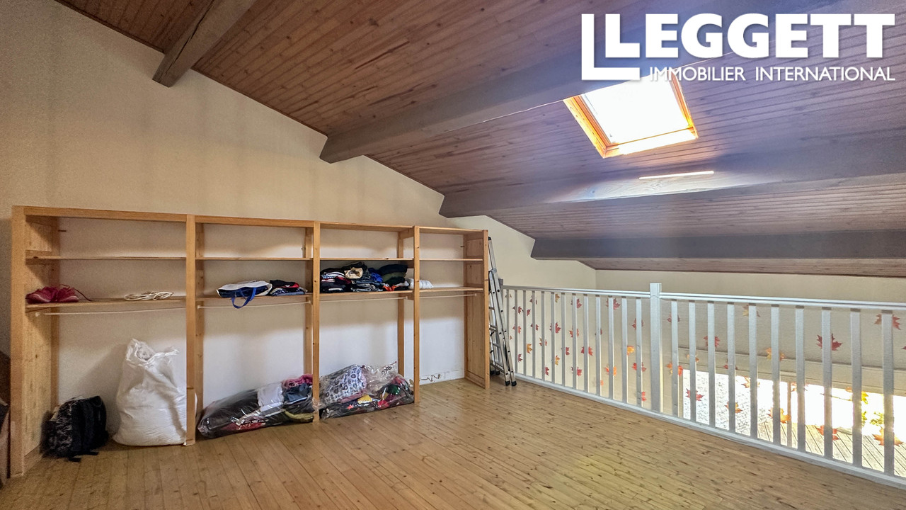 Au premier étage : 2 chambres, salle de bains avec WC et grande mezzanine à l'arrière, idéale pour un bureau, un atelier ou une chambre supplémentaire.