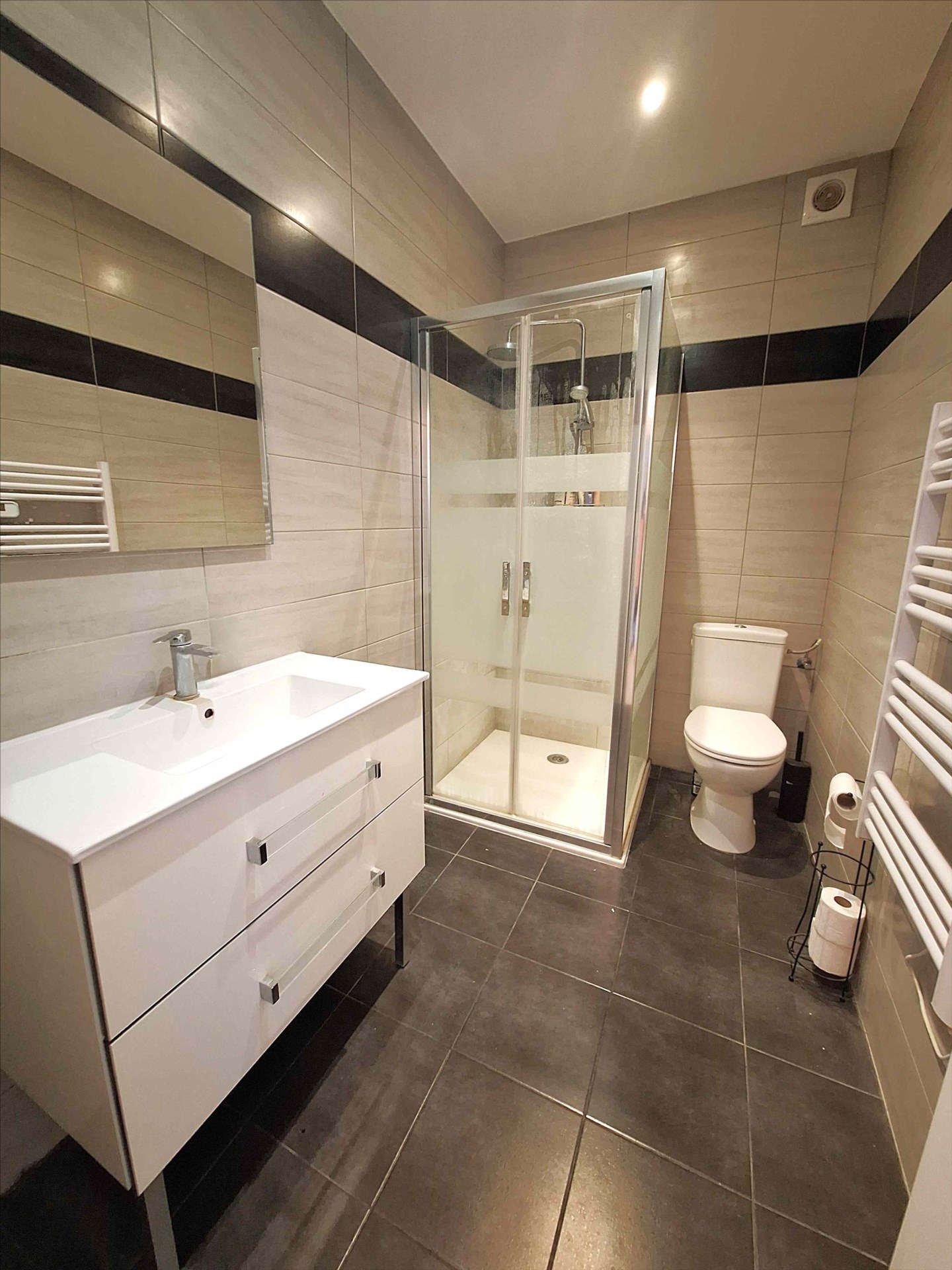 A l'étage, vous trouverez deux chambres à coucher ainsi qu'une salle d'eau avec wc ;