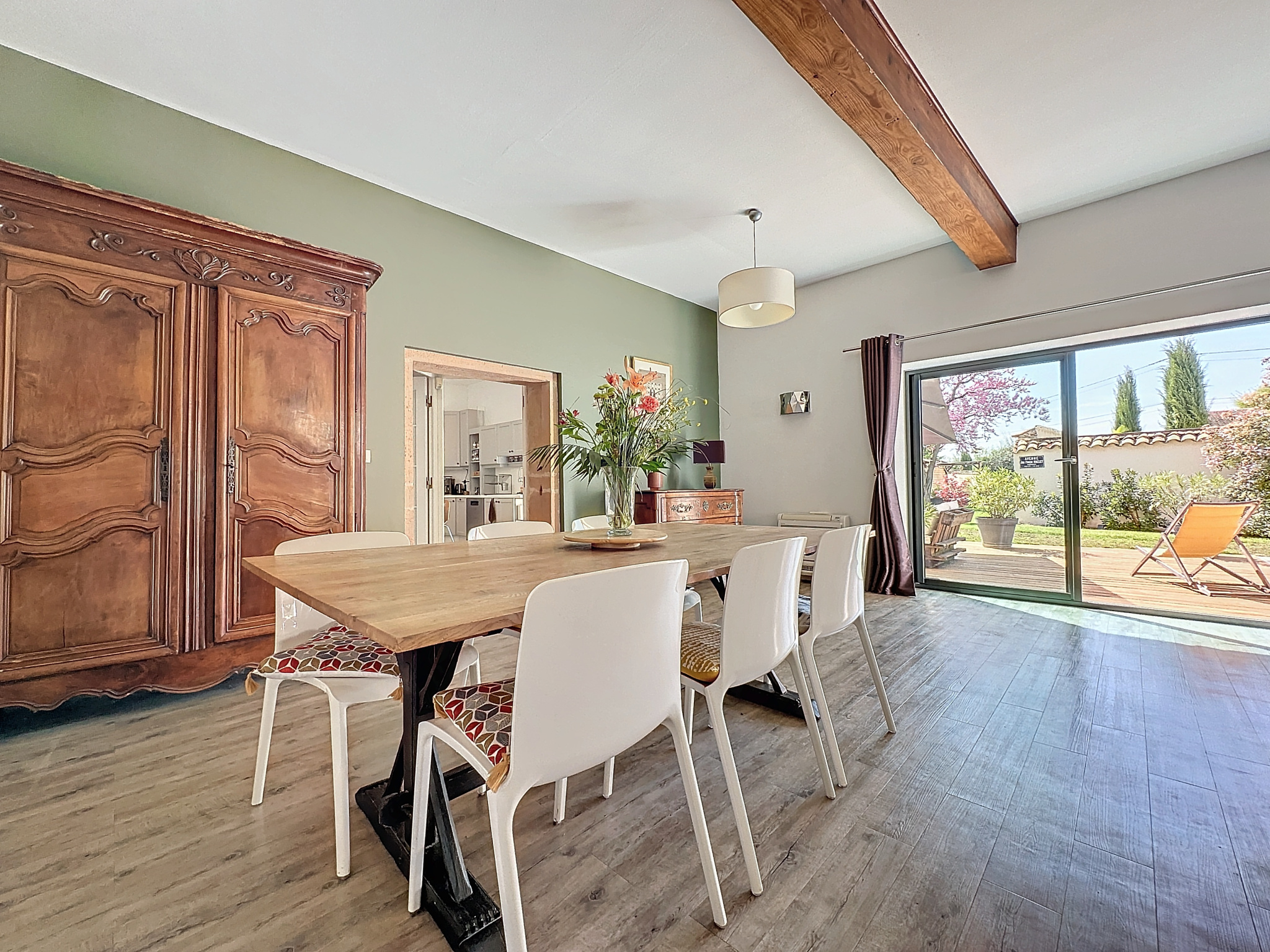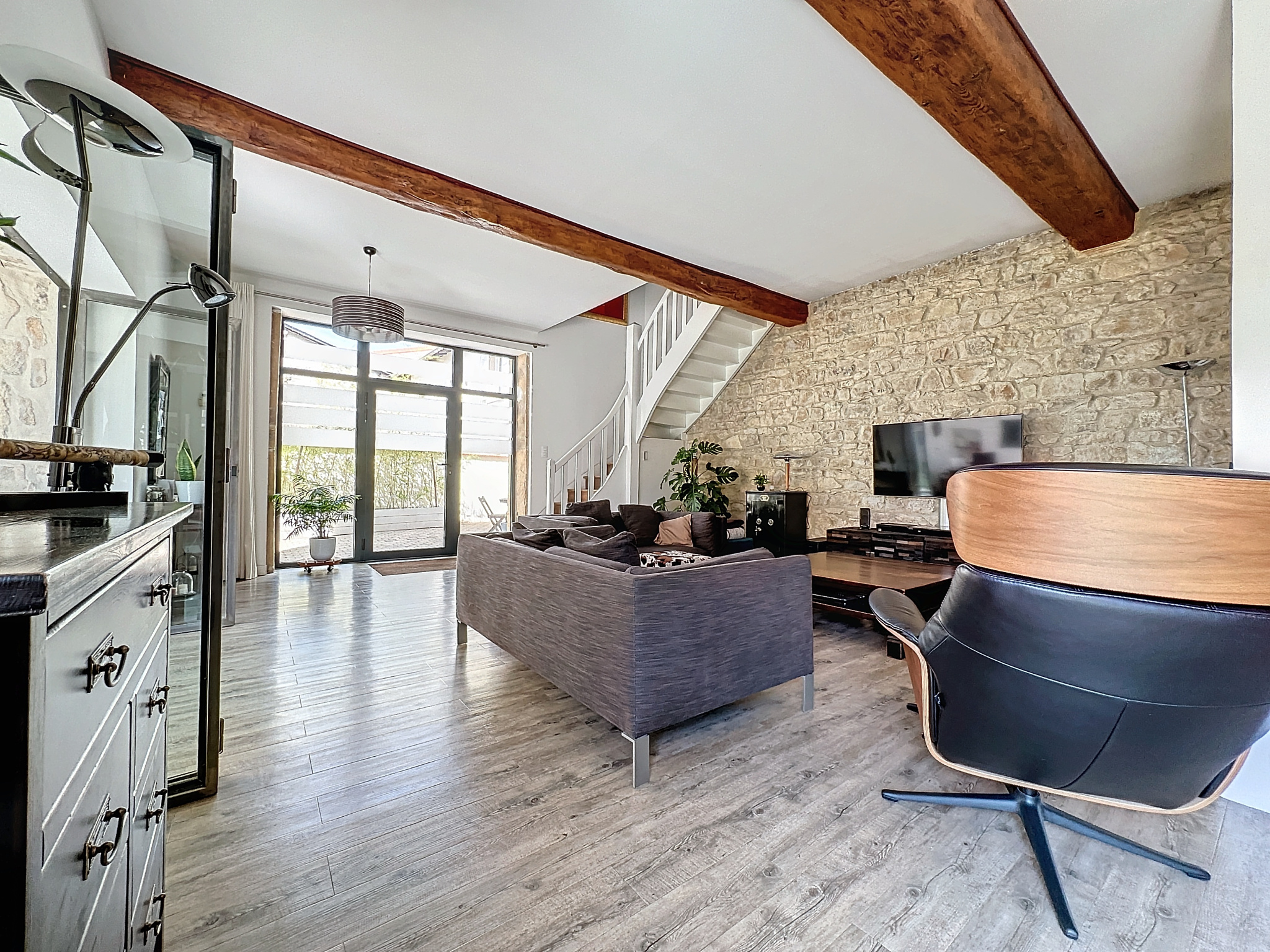 Venez découvrir le charme de cette belle maison en pierre entièrement rénovée, offrant un cadre de vie chaleureux. L'habitation principale, d'environ 190 m2, vous séduira par ses volumes. Au rez-de-chaussée, profitez d'une vaste pièce à vivre avec cheminée et de son extension créée en 2019, baignée de lumière, s'ouvrant largement sur le jardin. La cuisine indépendante, conviviale et fonctionnelle, dispose d'un espace dinatoire et d'un cellier attenant.