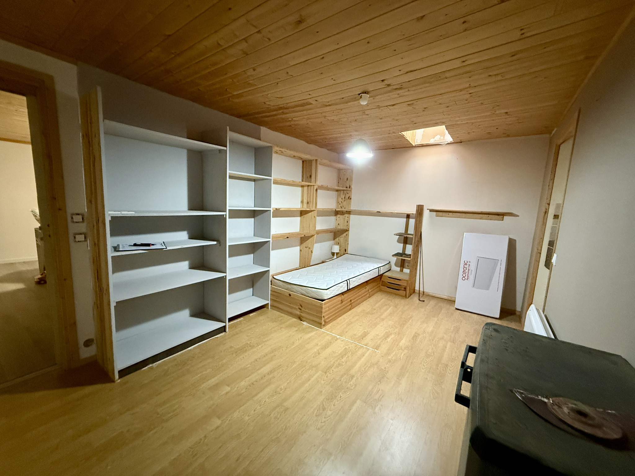 Un T2 comprenant une pièce de vie avec cuisine, une chambre à l'étage et une salle d'eau avec WC.