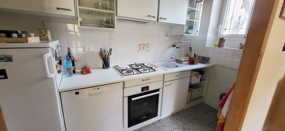 La maison: RDC: séjour avec coin repas et coin cuisine, véranda avec cuisine d'été, chambre parentale avec salle d'eau et Wc; Etage mansardé: palier, 2 chambres, salle de bains, WC. Cave en sous-sol.