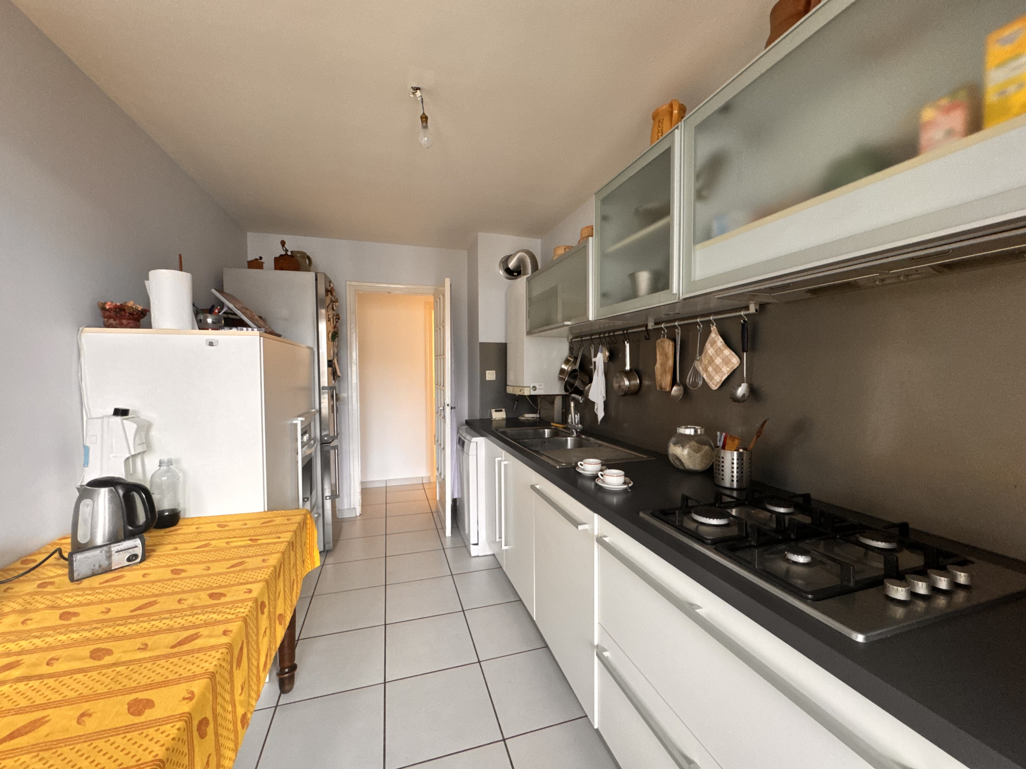 Le séjour et la cuisine sont exposés Sud-Ouest et s'ouvrent sur un balcon qui offre une très belle vue dégagée.