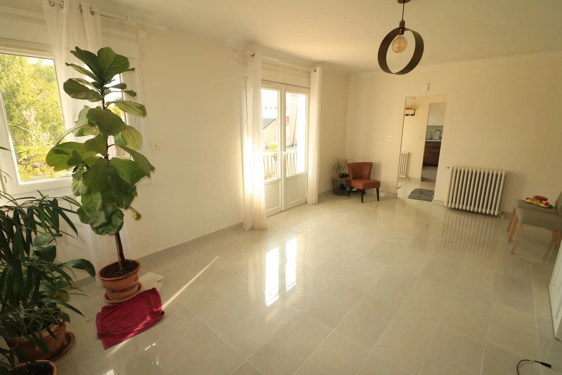 Au rez de chaussé, l'espace de vie principal, se compose d'un lumineux séjour ouvrant sur un balcon, d'une cuisine récente entièrement équipée, de trois chambres et d'une salle de douche moderne avec WC séparés.